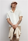Рубашка с короткими рукавами из фактурного трикотажа с отложным воротником, французским передом, передом и прямым подолом с разрезами по бокам. Регулярный крой для комфортной носки и классического силуэта.