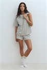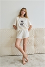 Пижама с футболкой и шортами из мягкого хлопкового джерси с набивным рисунком. Футболка с ребристой отделкой по вырезу горловины и спущенными плечами. Шорты с эластичной резинкой на талии.