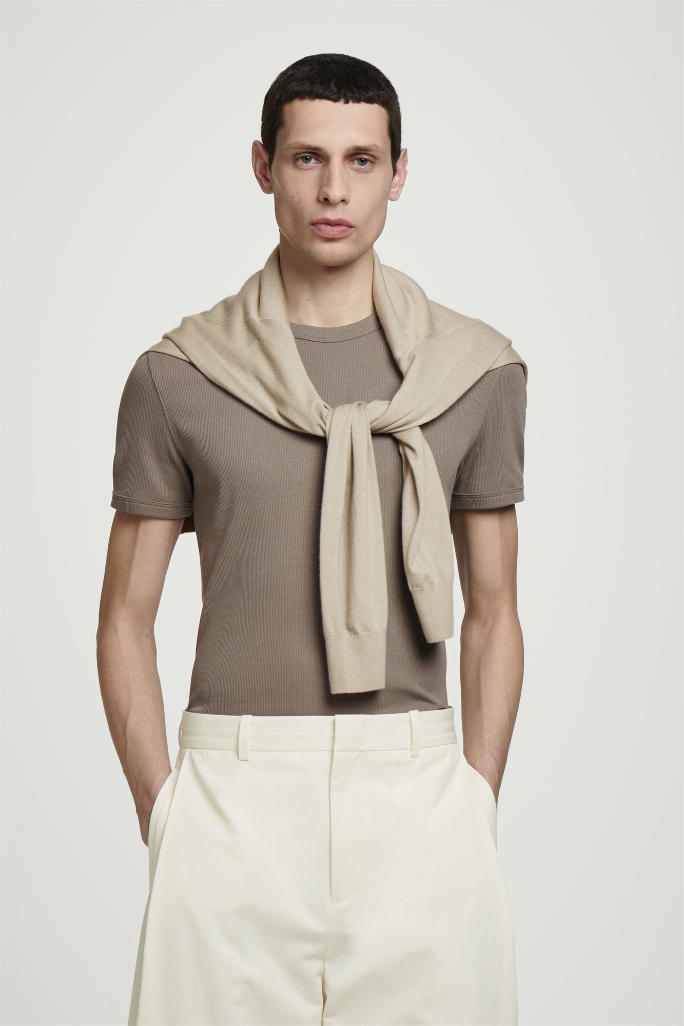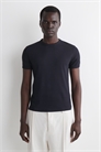 В этом сезоне команда мужской одежды COS представила в нашей коллекции футболок более обтекаемый крой. Она сшита из джерси из органического и переработанного хлопка с намеком на стрейч и с мелким рубчиком для плотного прилегания к груди и рукам. Тонкий фасон будет хорошо контрастировать с рубашками или блейзерами больших размеров. Облегающий крой, 230gsmОрганический хлопок выращен из негенетически модифицированных семян без использования химических удобрений и пестицидов Материал: 70% органический хлопок, 25% переработанный хлопок, 5% переработанный эластан. Без учета отделки / Машинная стирка Длина по спинке для размера M составляет 64,8 см / Модель носит размер M