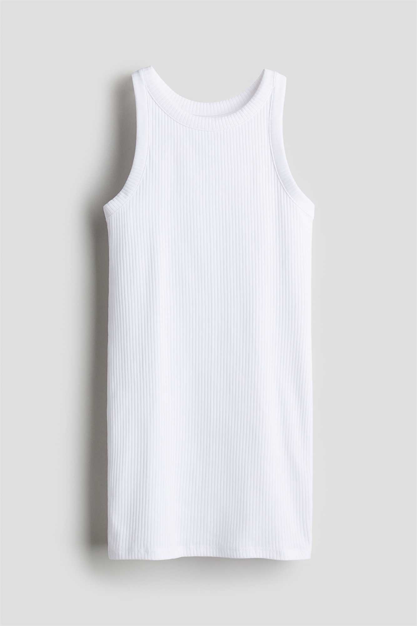 Платье без рукавов из ребристого джерси с узким вырезом в верхней части и круглым вырезом.