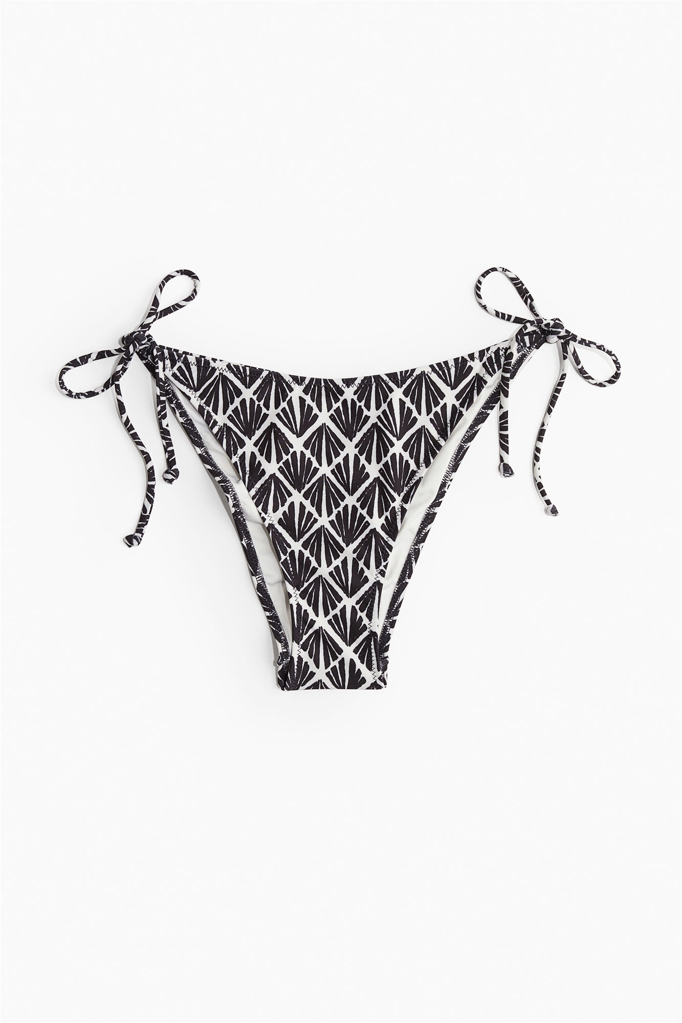 Полностью закрытые трусы-бикини со средней талией, завязками по бокам и вырезом сзади.