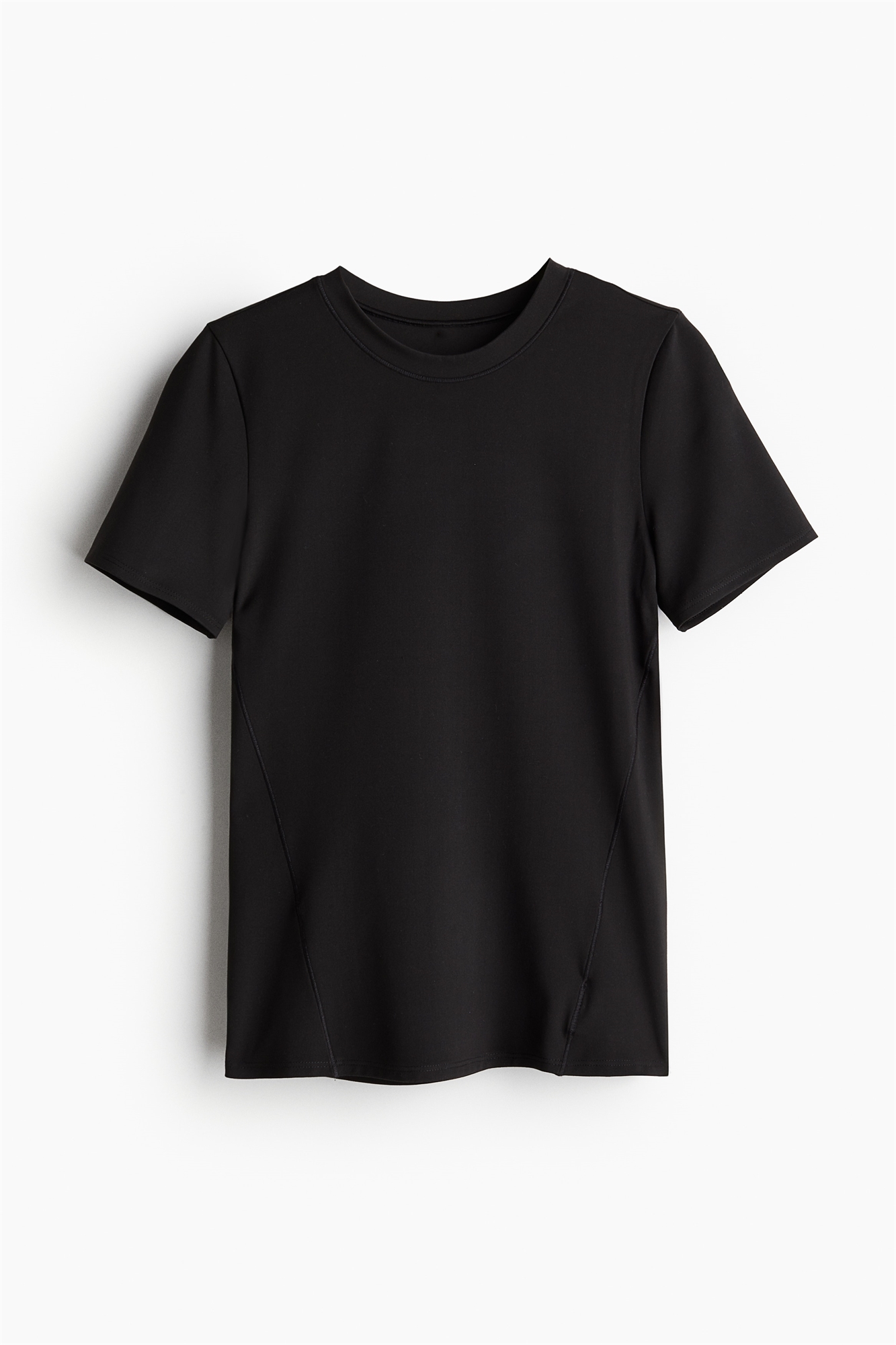 Спортивный топ из мягкой функциональной ткани с добавлением DryMove™, которая отводит влагу от кожи, обеспечивая комфортную сухость во время движения. Круглый вырез, короткие рукава и прямой подол.