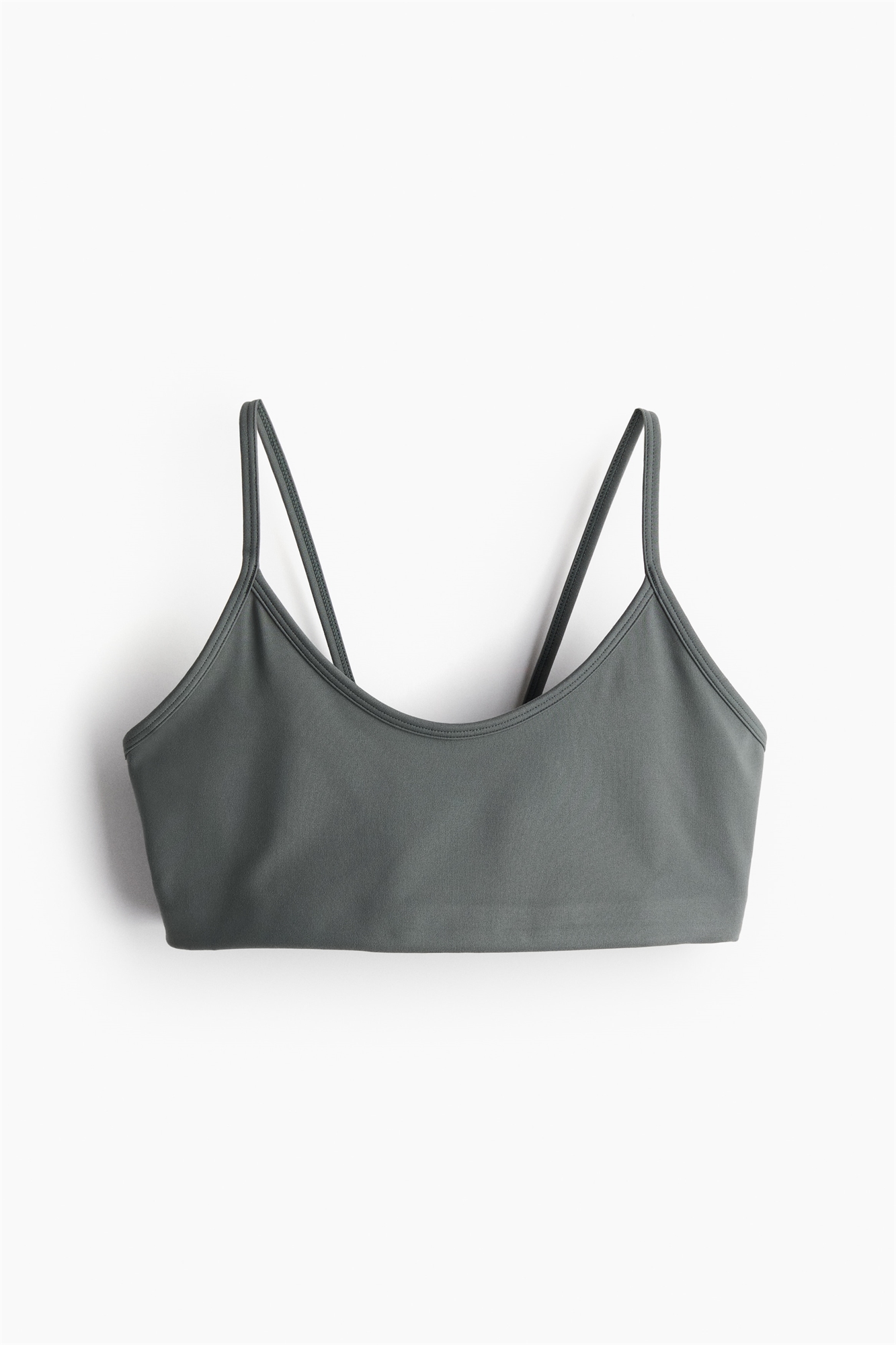 Спортивный бюстгальтер из функциональной ткани DryMove™, которая отводит влагу от кожи, обеспечивая комфортную сухость во время движения. Узкие бретели и круглый вырез. Легкая поддержка, подходящая для тренировок низкой интенсивности.