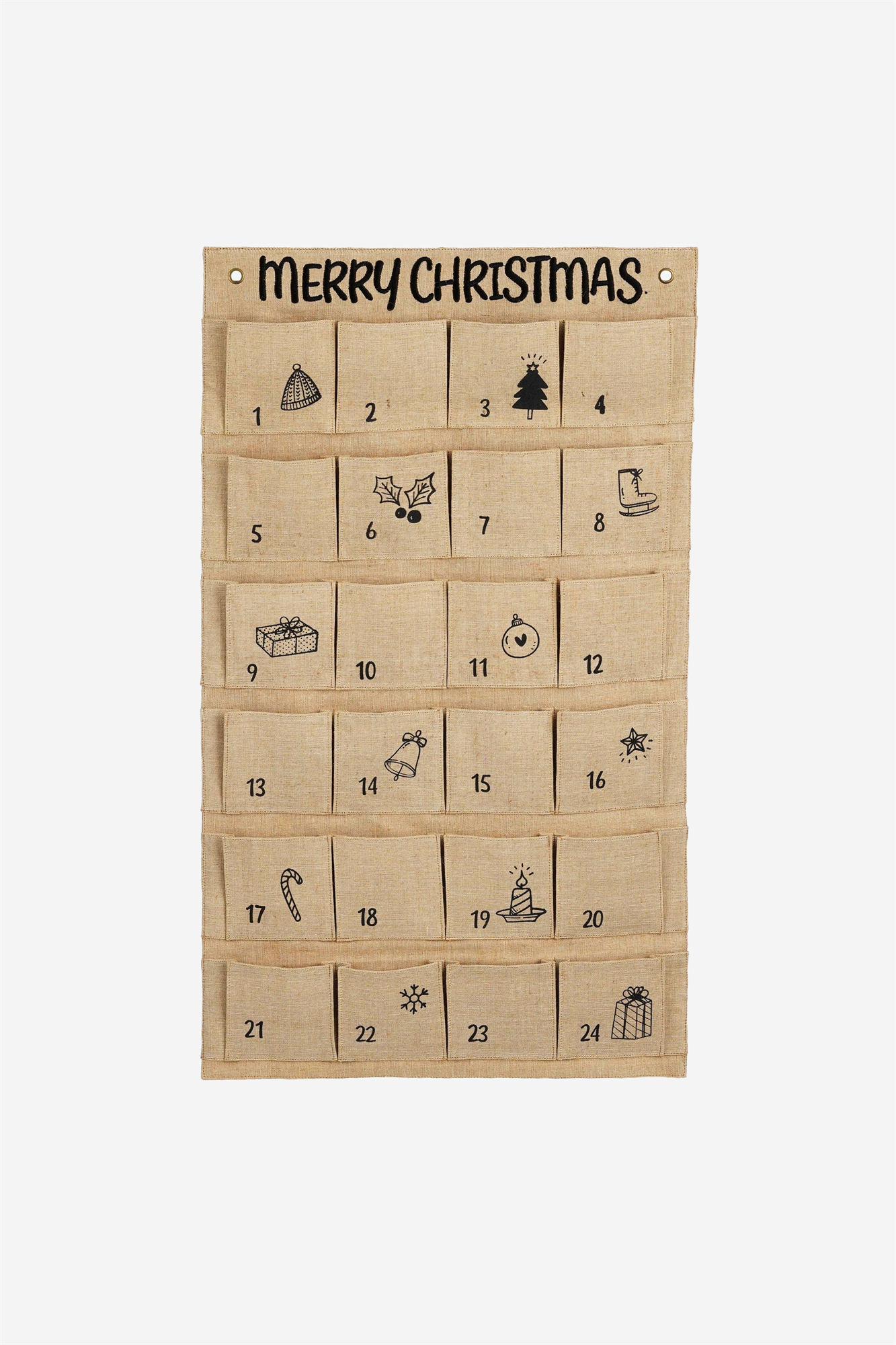 С этим адвент-календарем от House of Seasons вы сможете сделать праздничный сезон еще прекраснее для своих близких. Этот подвесной календарь можно заполнять по своему усмотрению, он изготовлен из джута натурального коричневого цвета - красота! В календаре 24 отделения с красивыми черными цифрами и веселыми рождественскими символами, в которые можно положить небольшой подарок. Длина календаря составляет 85 см, ширина - 50 см, а в комплекте с ним идут 2 кольца, чтобы вы могли легко повесить его на стену. Абсолютный must-have для праздничного декабря! Его также можно сочетать с другими рождественскими украшениями из коллекции House of Seasons!