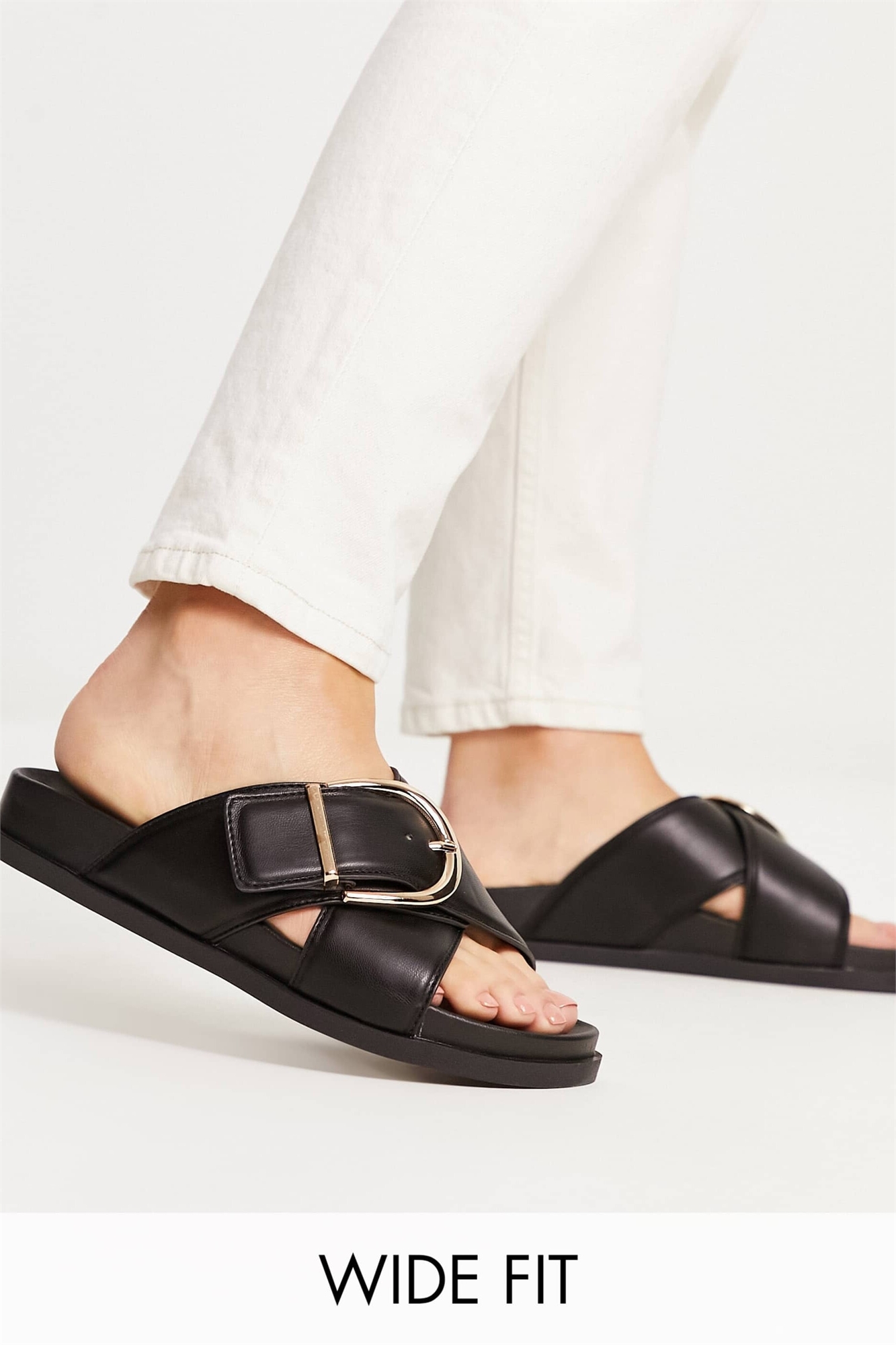 Плоские сандалии с широким верхом и перекрещивающимся ремешком на застежке-молнии