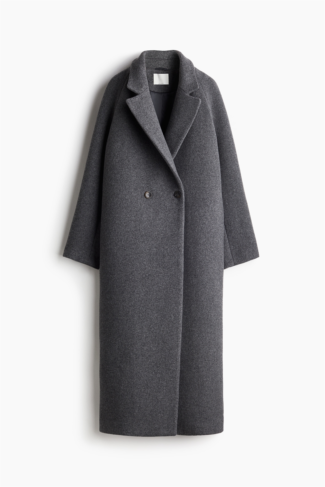 Двубортное пальто свободного кроя из микса войлочной шерсти с лацканами с вырезом и пуговицами спереди. Рукава реглан, неброские боковые карманы и один задний клапан. На подкладке.
