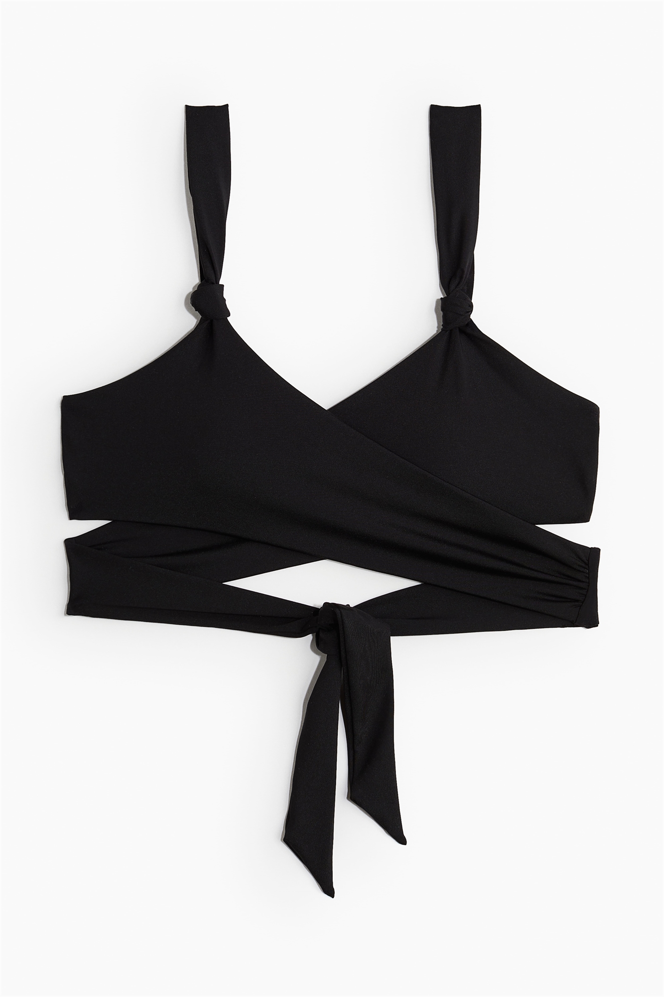 Бикини на подкладке, без проводов, с длинными бретелями, завязывающимися сзади. Регулируемые бретели с узлом спереди и чашечки со съемными вставками, которые формируют бюст и обеспечивают хорошую поддержку.