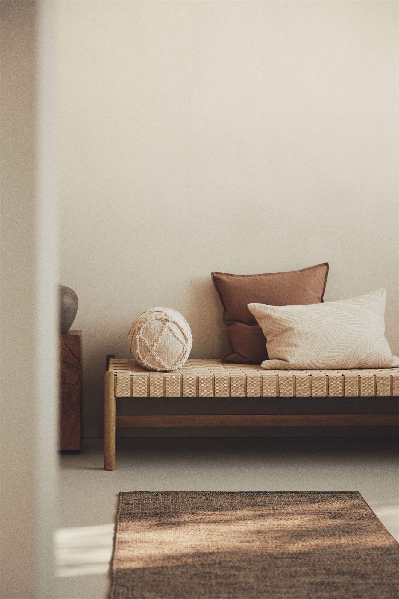 Ковер плоского плетения натурального цвета, создающий уютную атмосферу в помещении и на улице. Для помещений мы рекомендуем использовать противоскользящую подложку, которая поможет удержать ковер на месте и снизит риск поскользнуться. Хранение ковра в помещении после окончания сезона на открытом воздухе поможет ему прослужить дольше.