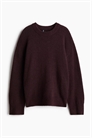 Джемпер свободного кроя из мягкого трикотажа с добавлением шерсти. Круглый вырез с ребристой отделкой, спущенные плечи и длинные рукава. Ребристые манжеты и подол.