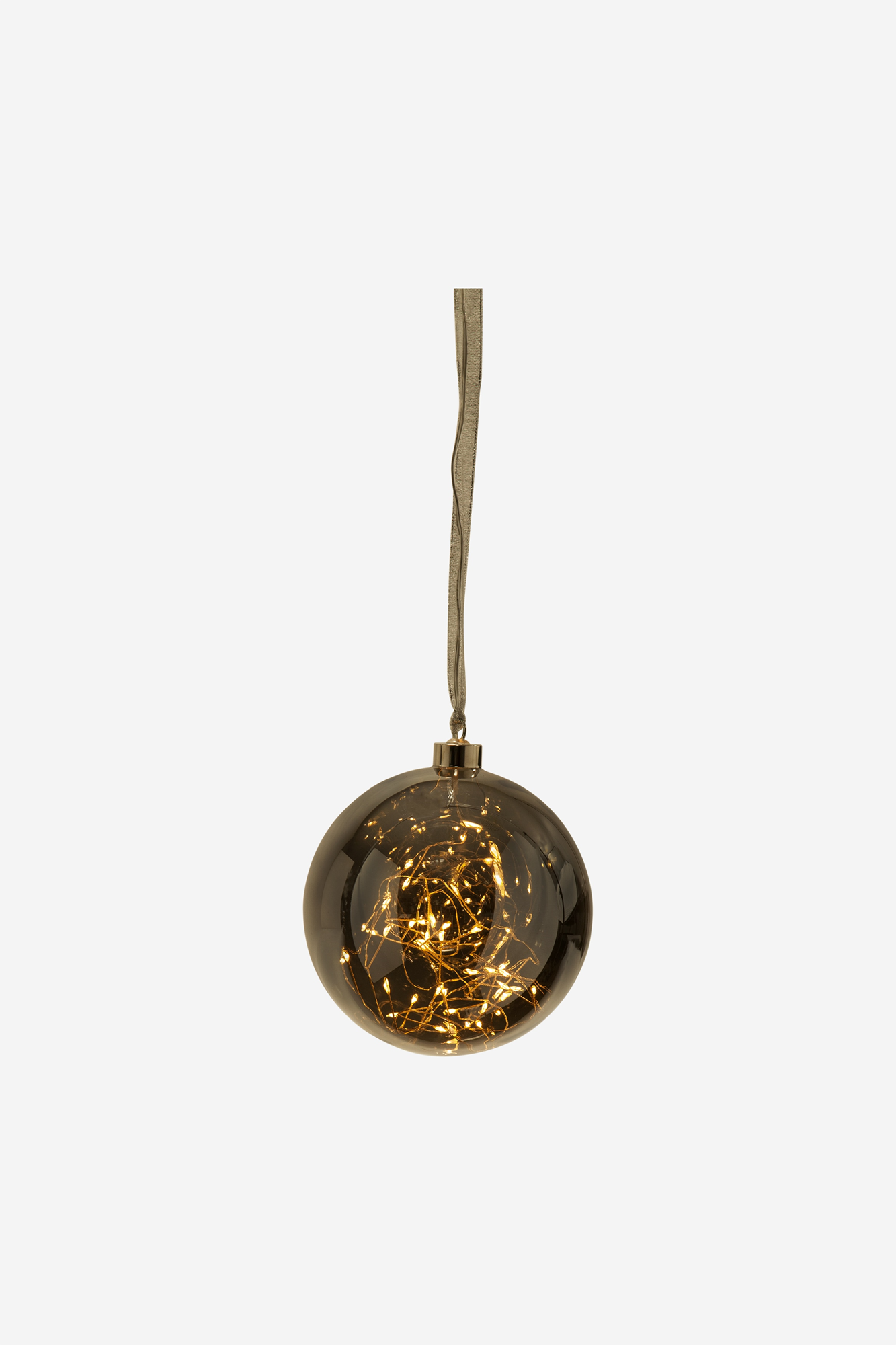 Стеклянный шар с цепочкой в виде капли росы. Цепочка с 40 светодиодами. Очаровательное стеклянное украшение с уютным свечением. Высота: 16 см. Ширина: 15 см. Глубина: 15 см.