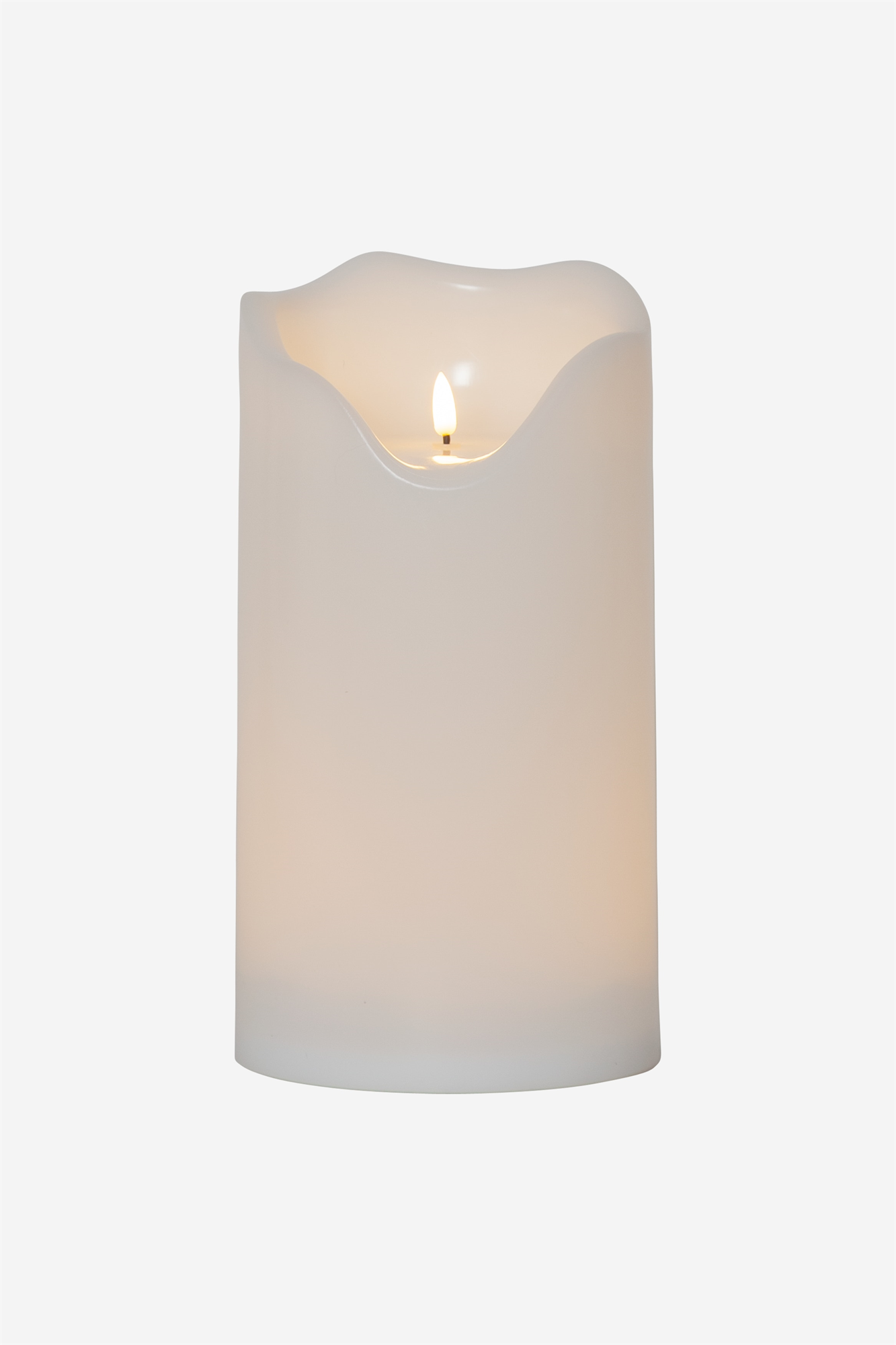 Свеча для наружного применения из семейства Flamme. Модель изготовлена из пластика. Светится теплым белым светом. Высота: 30 см. Ширина: 16 см. Глубина: 16 см.