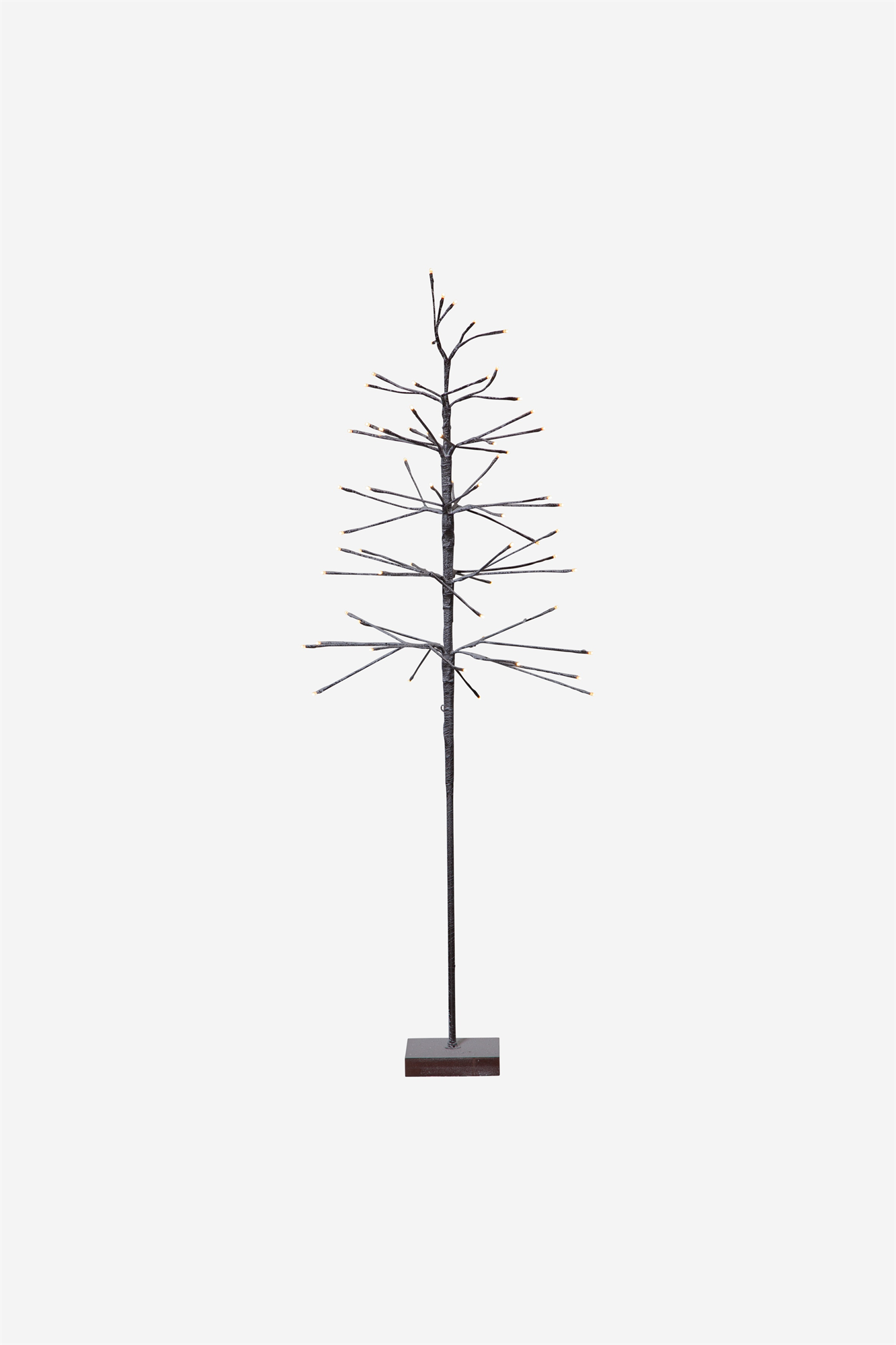 Декоративное дерево для использования в помещении. Коричневый ствол и ветви с эффектом снега. Модель высотой 150 см с 63 теплыми белыми светодиодами. Высота: 150 см. Ширина: 58 см. Глубина: 58 см.