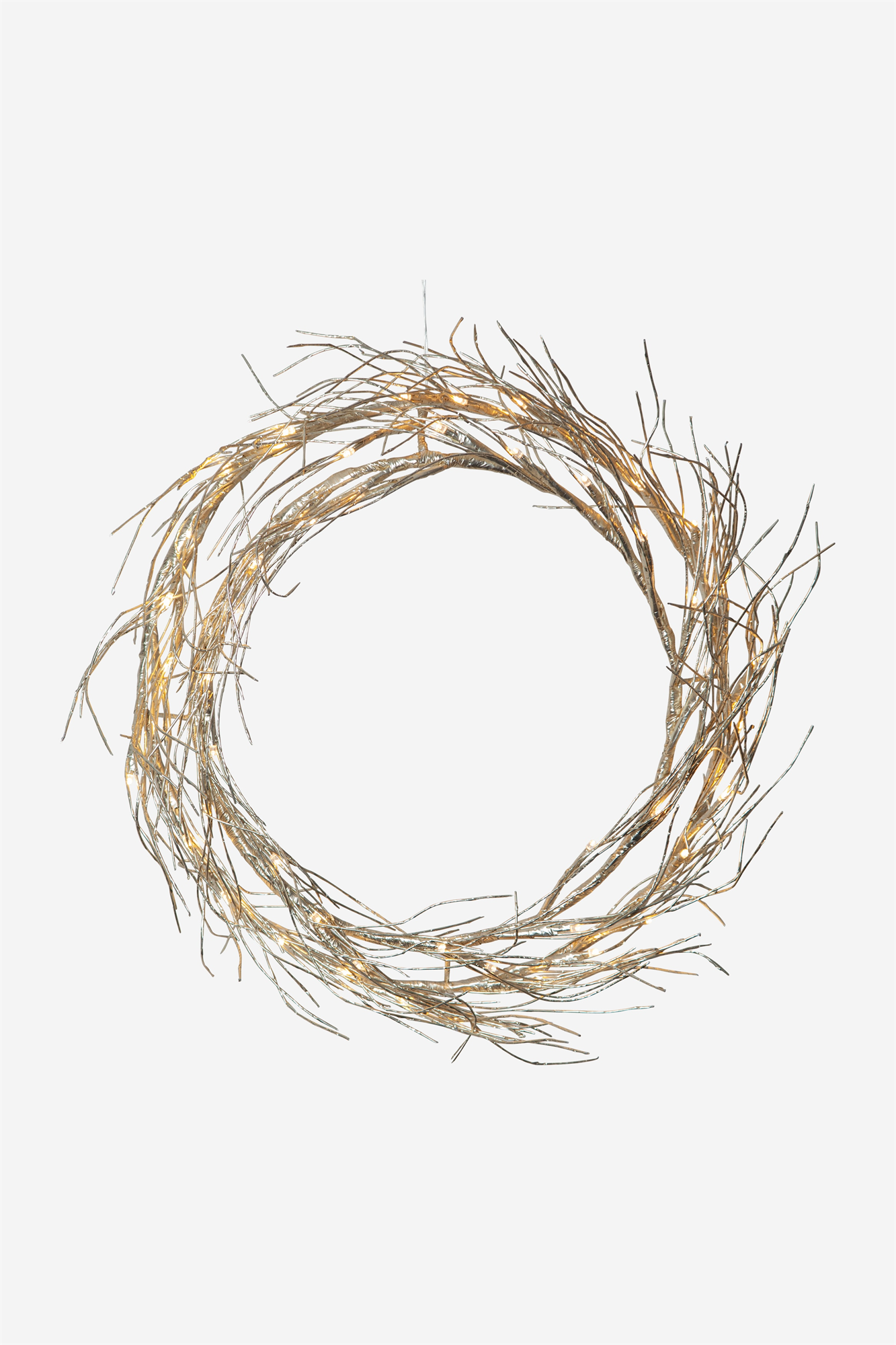 Этот красивый венок украсит стену или окно. Изящный венок имеет двойной дизайн и поэтому выглядит особенно пышно и гламурно. 50 маленьких светодиодных лампочек излучают атмосферный свет. Эта модель украсит не только Рождество, но и другие праздничные события. Высота: 45 см. Ширина: 45 см. Глубина: 5 см.