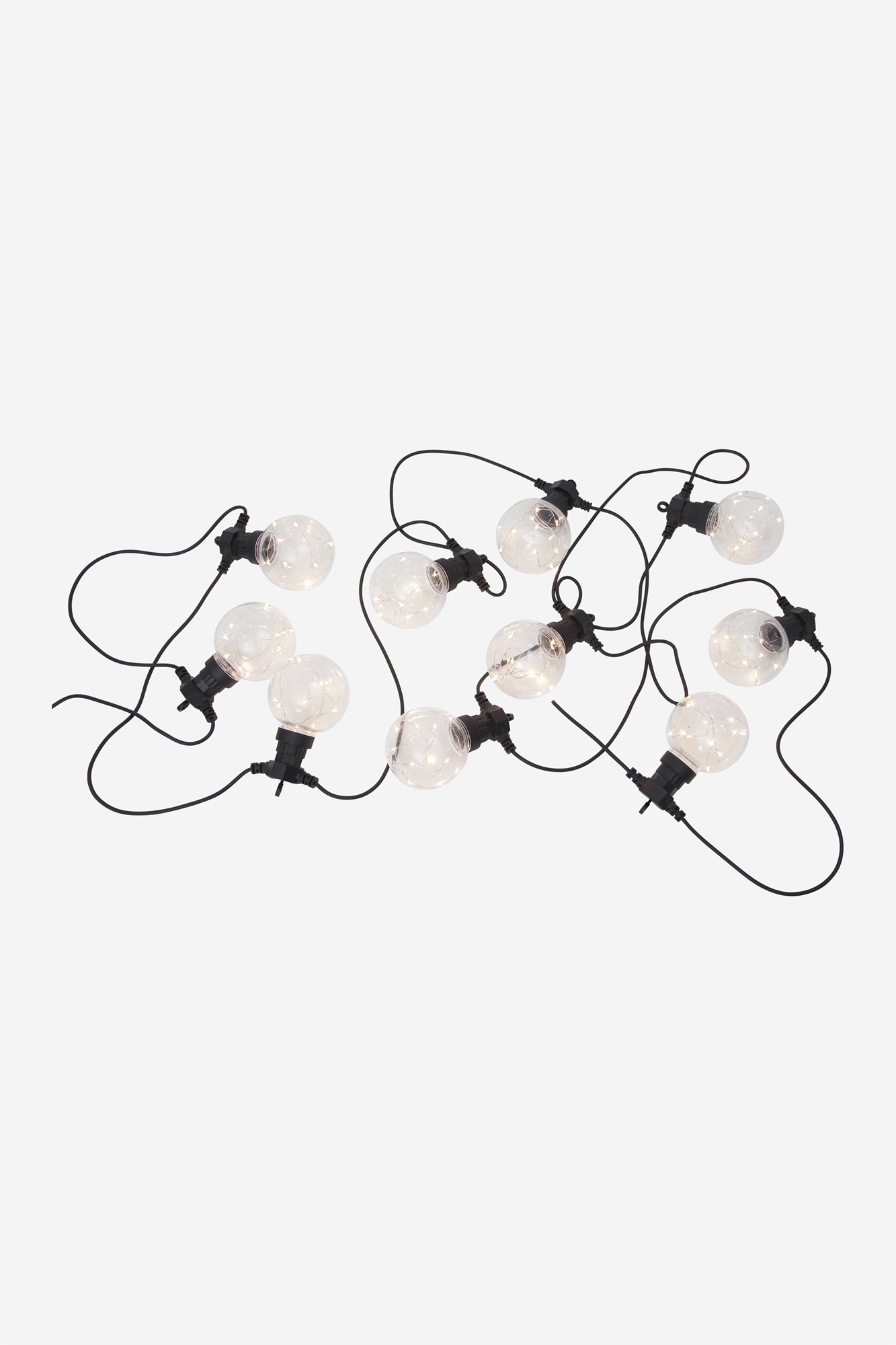 Симпатичные праздничные феи для украшения повседневной жизни и вечеринок. Модель обеспечивает приятный свет в темноте. 10 прозрачных сфер, каждая с 10 теплыми белыми светодиодами. Высота: 14 см. Длина: 450 см. Глубина: 8 см.