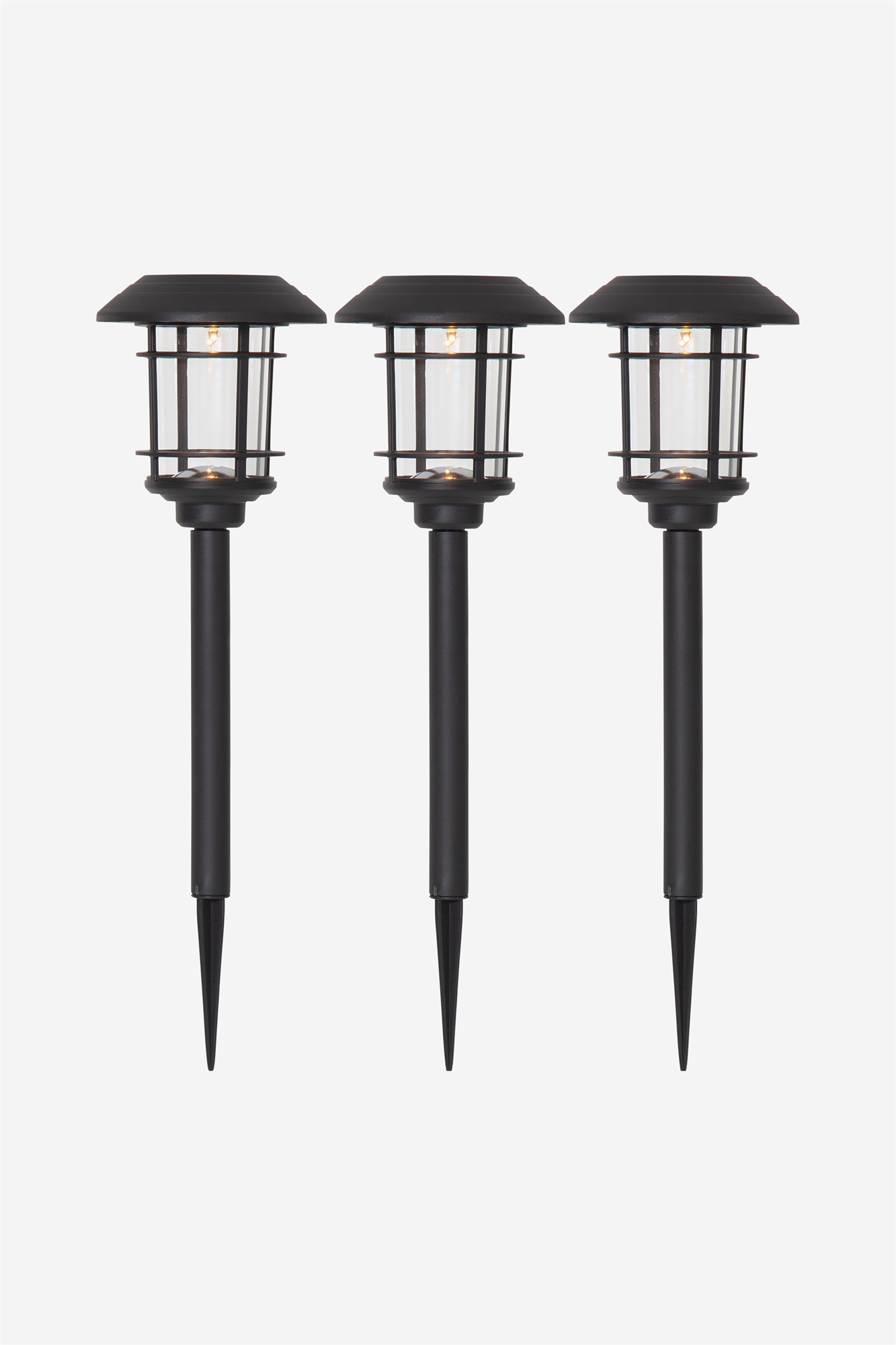 3 фонаря для дорожек на солнечных батареях. Днем солнечная батарея заряжает аккумулятор от солнечного света, а в темное время суток болларды светят 6 лм. Высота: 34 см. Ширина: 12,5 см. Глубина: 12,5 см.