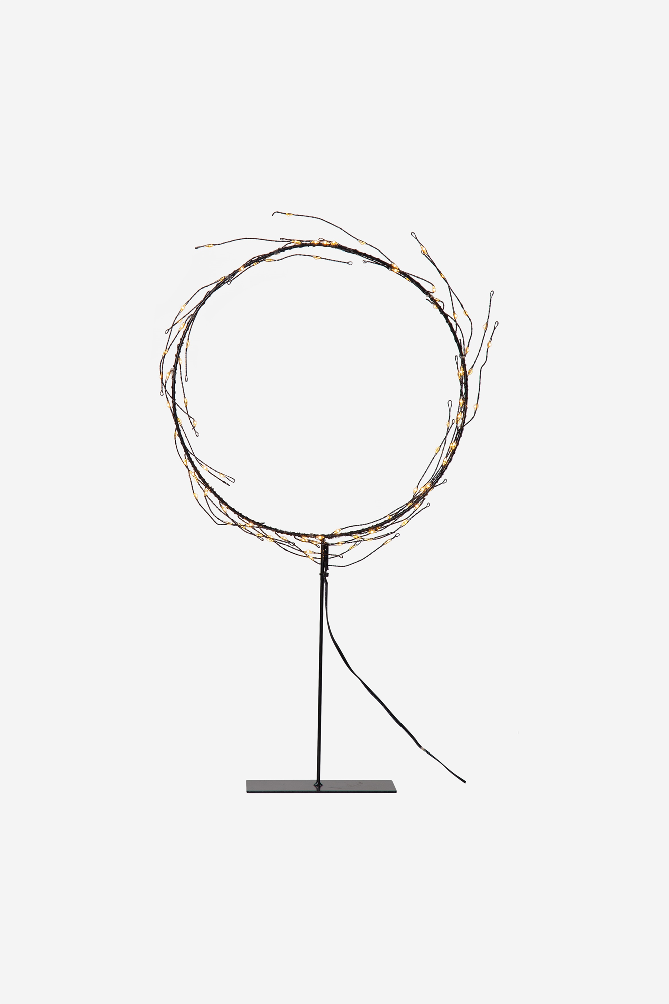 Атмосферный венок с основанием, выполненный из черного лакированного металла. 95 маленьких светодиодных лампочек излучают красивый свет. Если вы не хотите ждать декабря, чтобы украсить дом, просто украсьте его, как только начнется темное время года. Высота: 43 см. Ширина: 24 см. Глубина: 6 см.