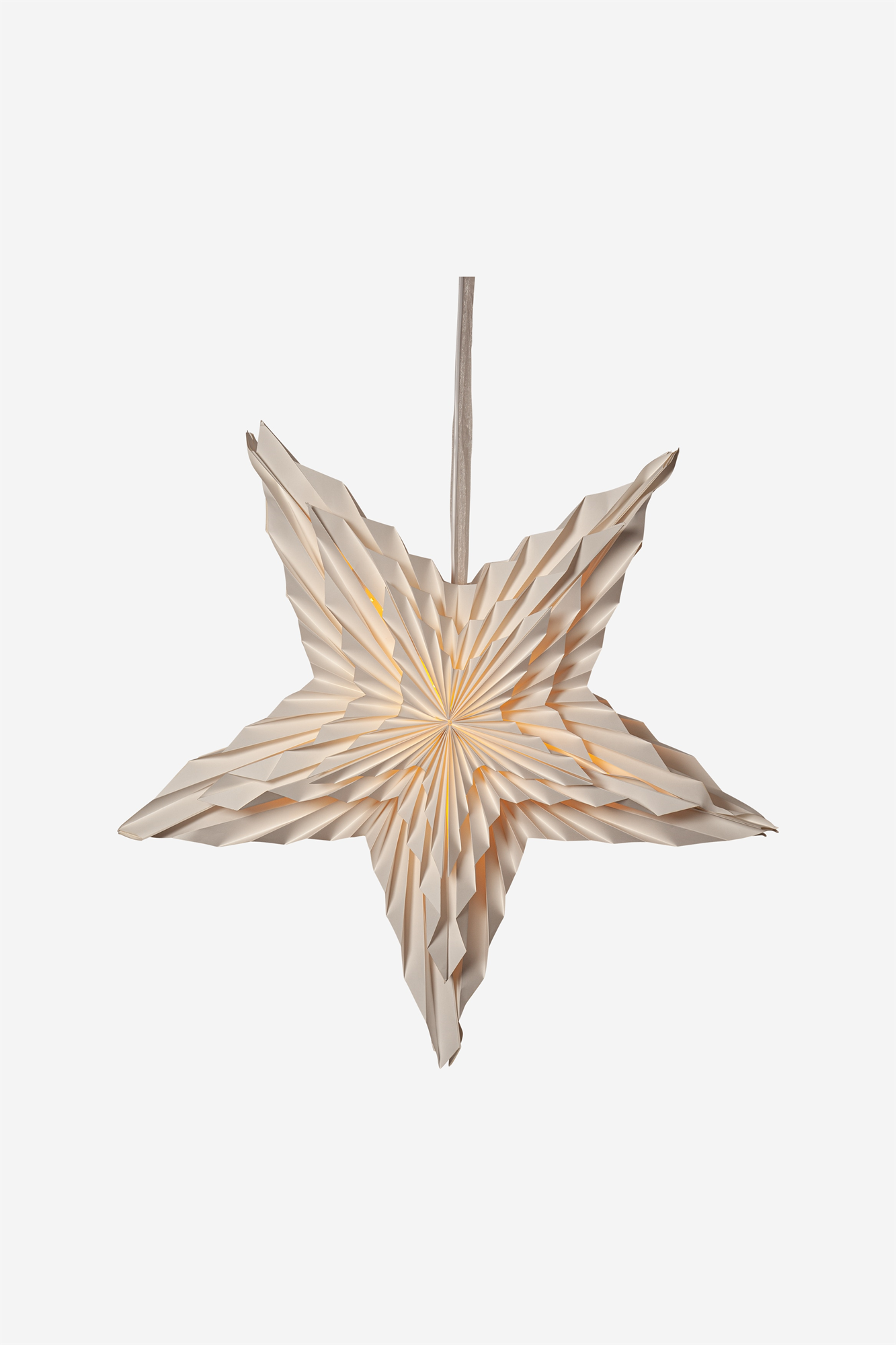 Великолепная звезда, сложенная из трех слоев бумаги. Слегка неровный контур звезды придает ей особую зимнюю нотку. Элегантная ленточка позволяет легко подвесить ее. Эта адвент-звезда добавит волшебную рождественскую атмосферу в любой дом. Прекрасно подходит для украшения окна или стены. Если вы хотите, чтобы звезда светилась, мы также можем предложить вам кабели и лампочки. Высота: 70 см. Ширина: 70 см. Глубина: 18 см.