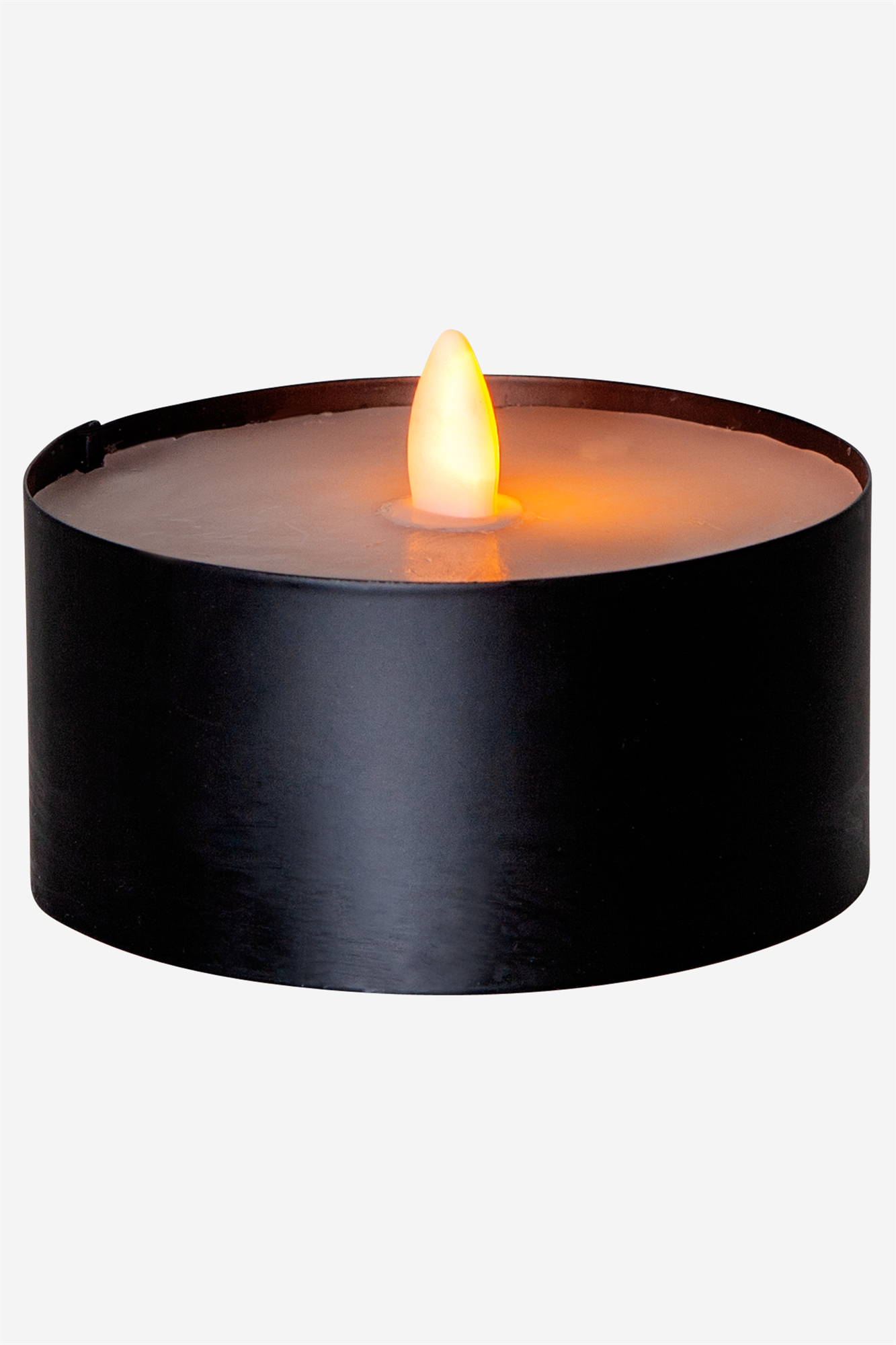 Уличная восковая свеча-факел с черной металлической пластиной. 18 светодиодов создают реалистичное пламя. Модель с таймером. Светильник оснащен функцией таймера. Работает от 3 батареек типа АА (не входят в комплект). Светит около 500 часов до замены батареек. Диаметр свечи составляет 10,5 см, высота - 7 см. Светильник подходит для использования как в помещении, так и на улице.