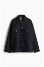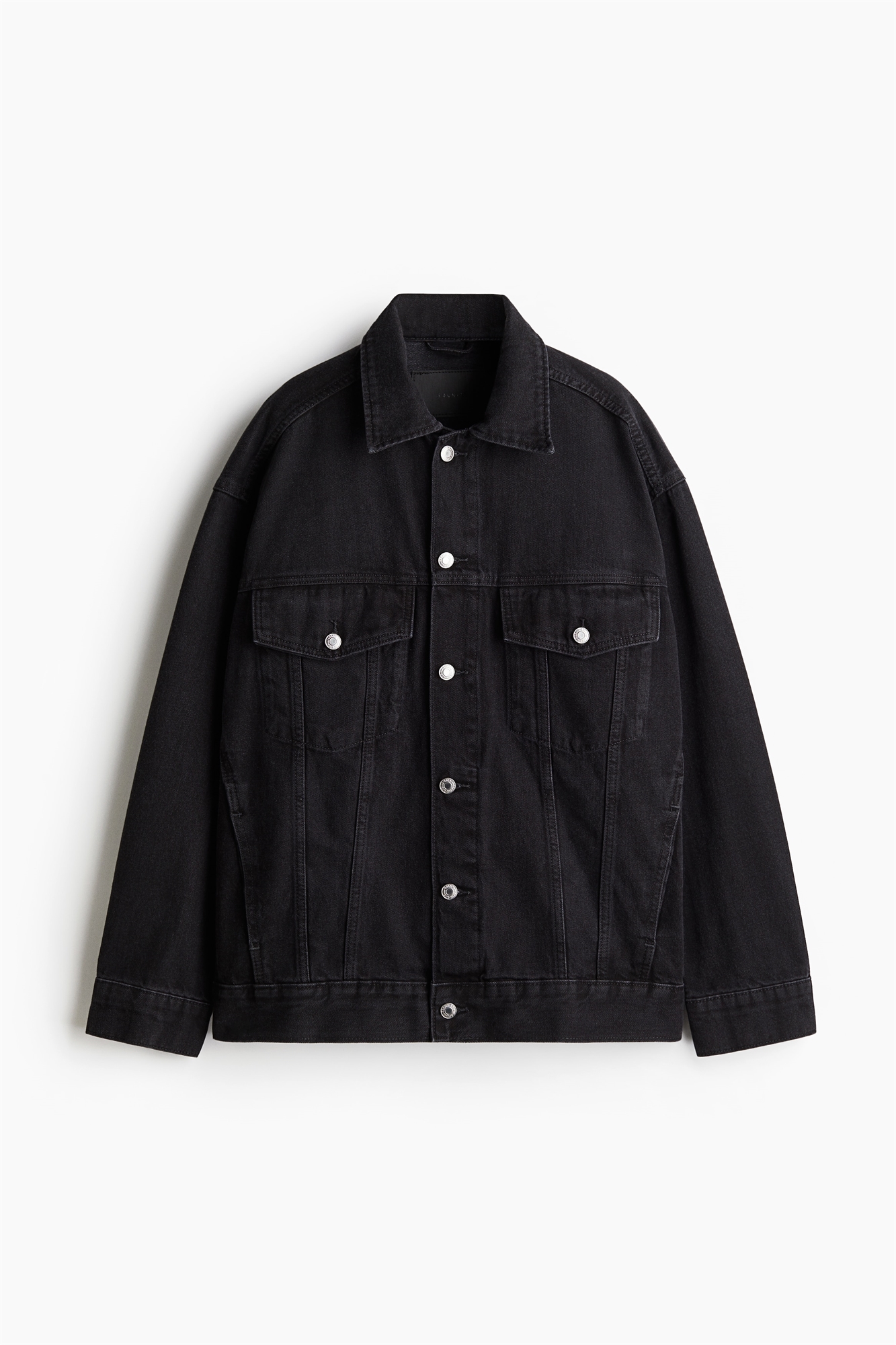 Куртка в стиле дальнобойщика из жесткого хлопкового денима с воротником, металлическими пуговицами спереди, направленными вперед плечевыми швами и передом и спиной. Силуэт оверсайз, спущенные плечи, манжеты на пуговицах, накладные нагрудные карманы на пуговице и неброские боковые карманы.