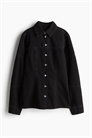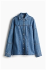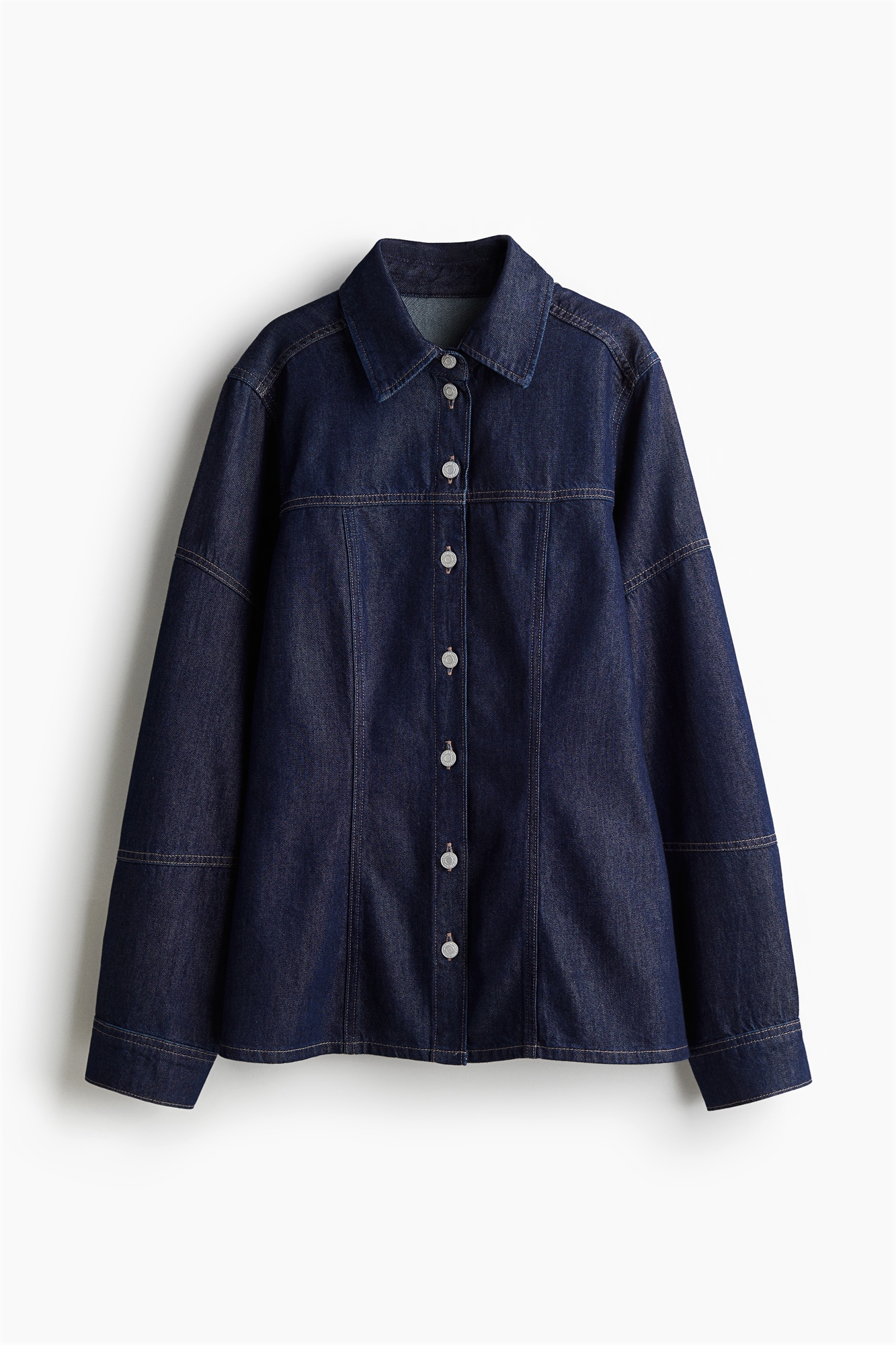 Рубашка из жесткого хлопкового денима с воротником и пуговицами спереди и на манжетах.
