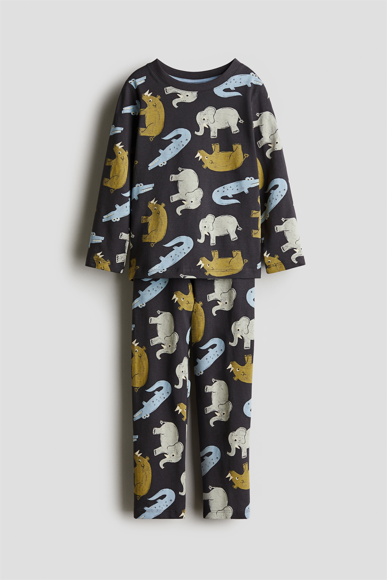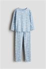 Пижама с верхом и низом из мягкого хлопкового джерси с рисунком. Верхняя часть с длинными рукавами и круглым вырезом. Нижние штанишки с утяжкой на талии.
