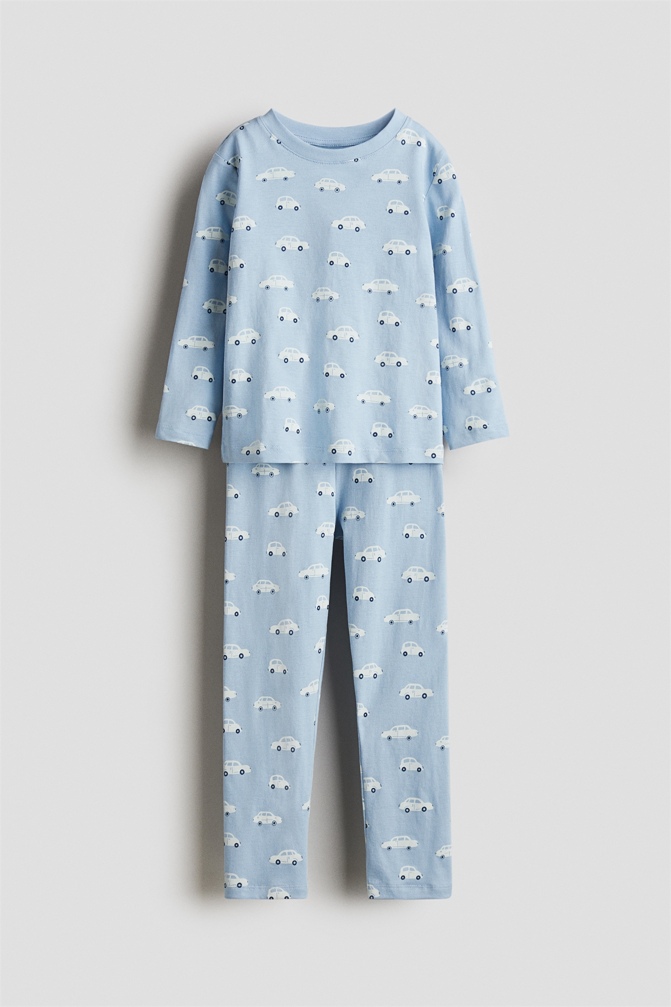 Пижама с верхом и низом из мягкого хлопкового джерси с рисунком. Верхняя часть с длинными рукавами и круглым вырезом. Нижние штанишки с утяжкой на талии.
