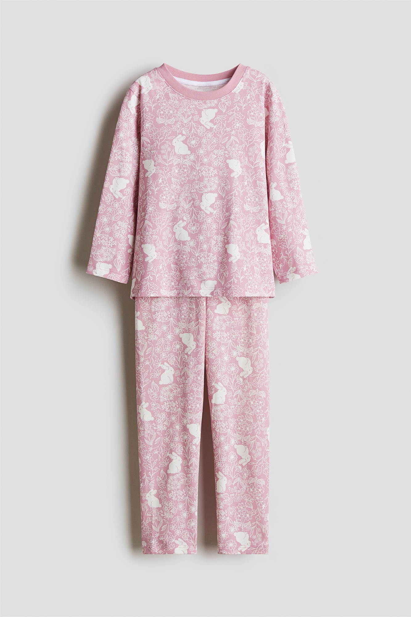 Пижама с верхом и штанами из хлопкового джерси с рисунком. Верхняя часть с круглым вырезом и длинными рукавами. Низ с эластичным поясом.