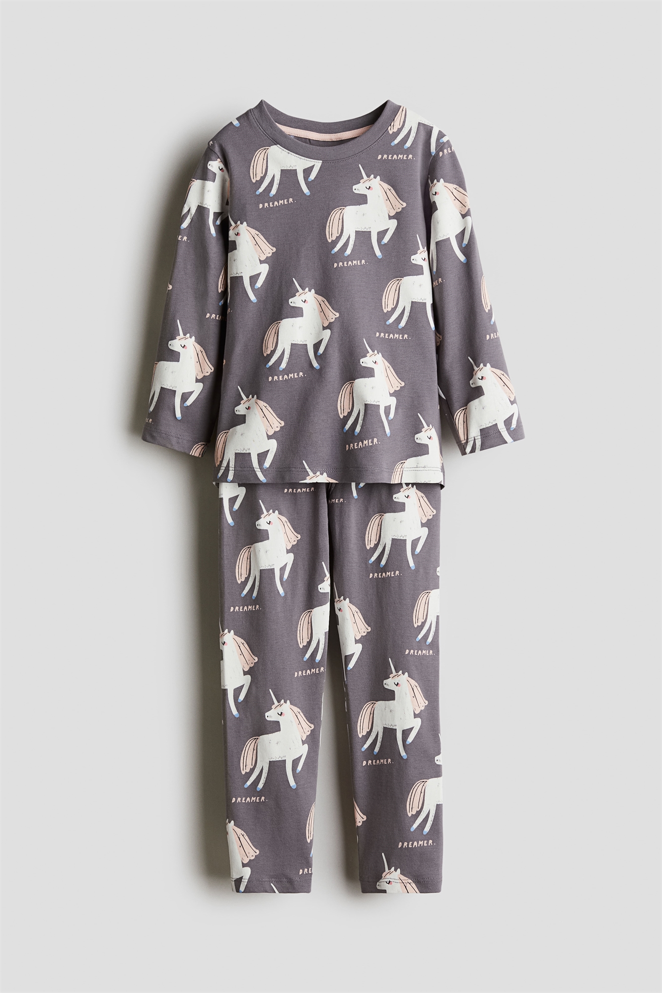 Пижама с верхом и штанами из хлопкового джерси с рисунком. Верхняя часть с круглым вырезом и длинными рукавами. Низ с эластичным поясом.