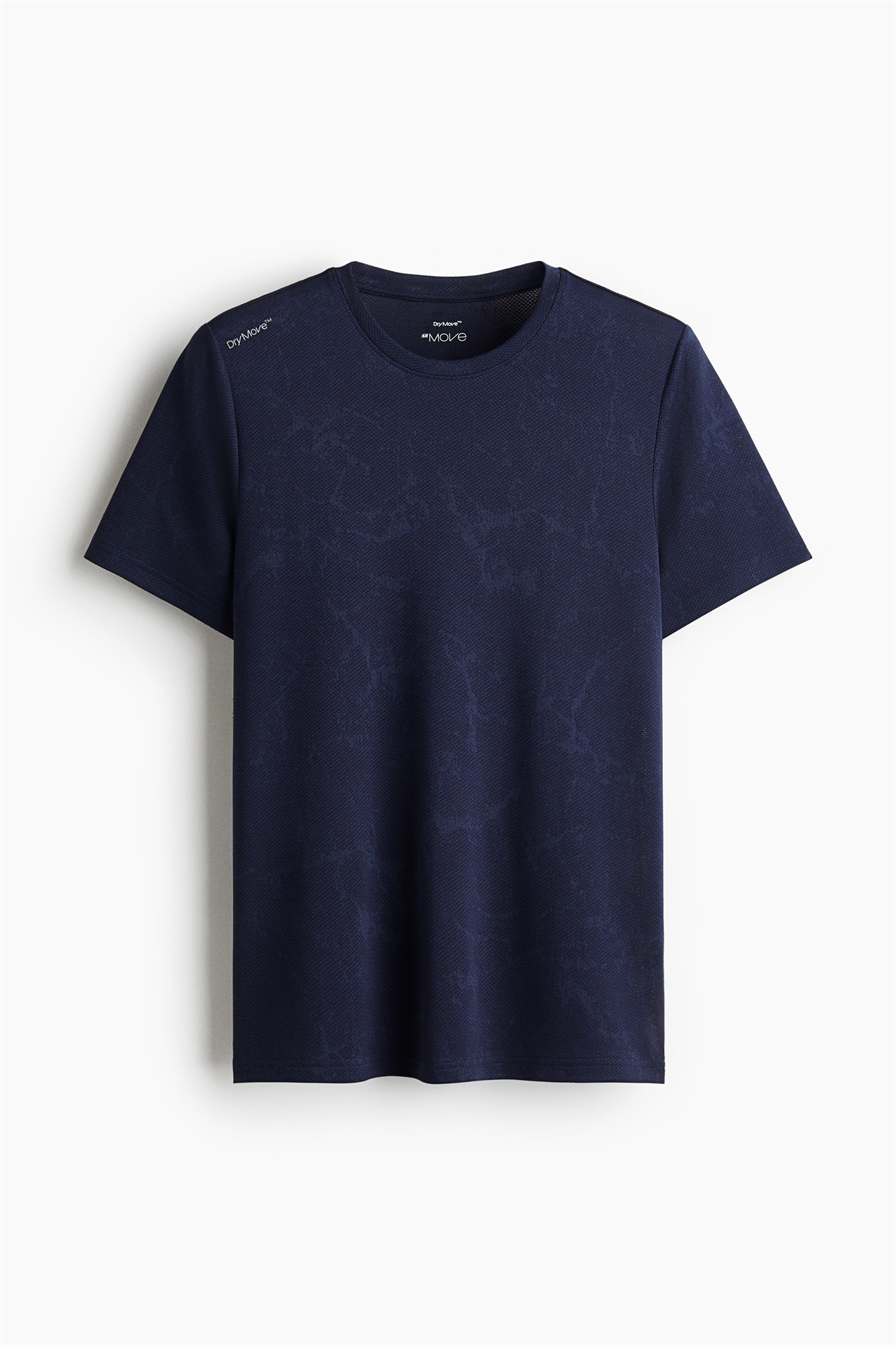 Спортивный топ из функциональной ткани DryMove™, которая отводит влагу от кожи, обеспечивая комфортную сухость во время движения. Регулярный крой с круглым вырезом и короткими рукавами.