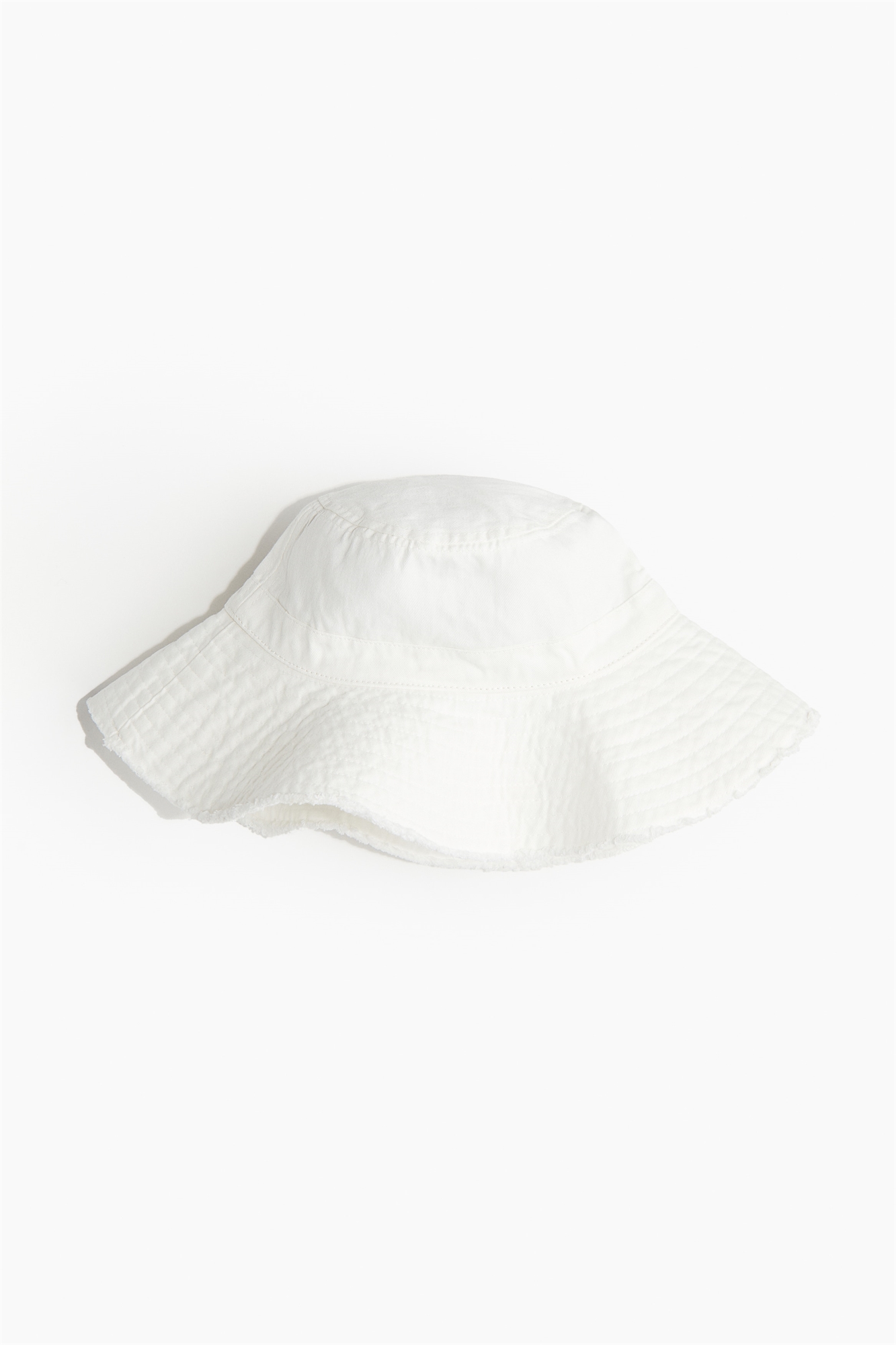Шляпа-ведро из хлопковой саржи с обтрепанным краем и хлопковым начесом. Ширина по краю 9 см.