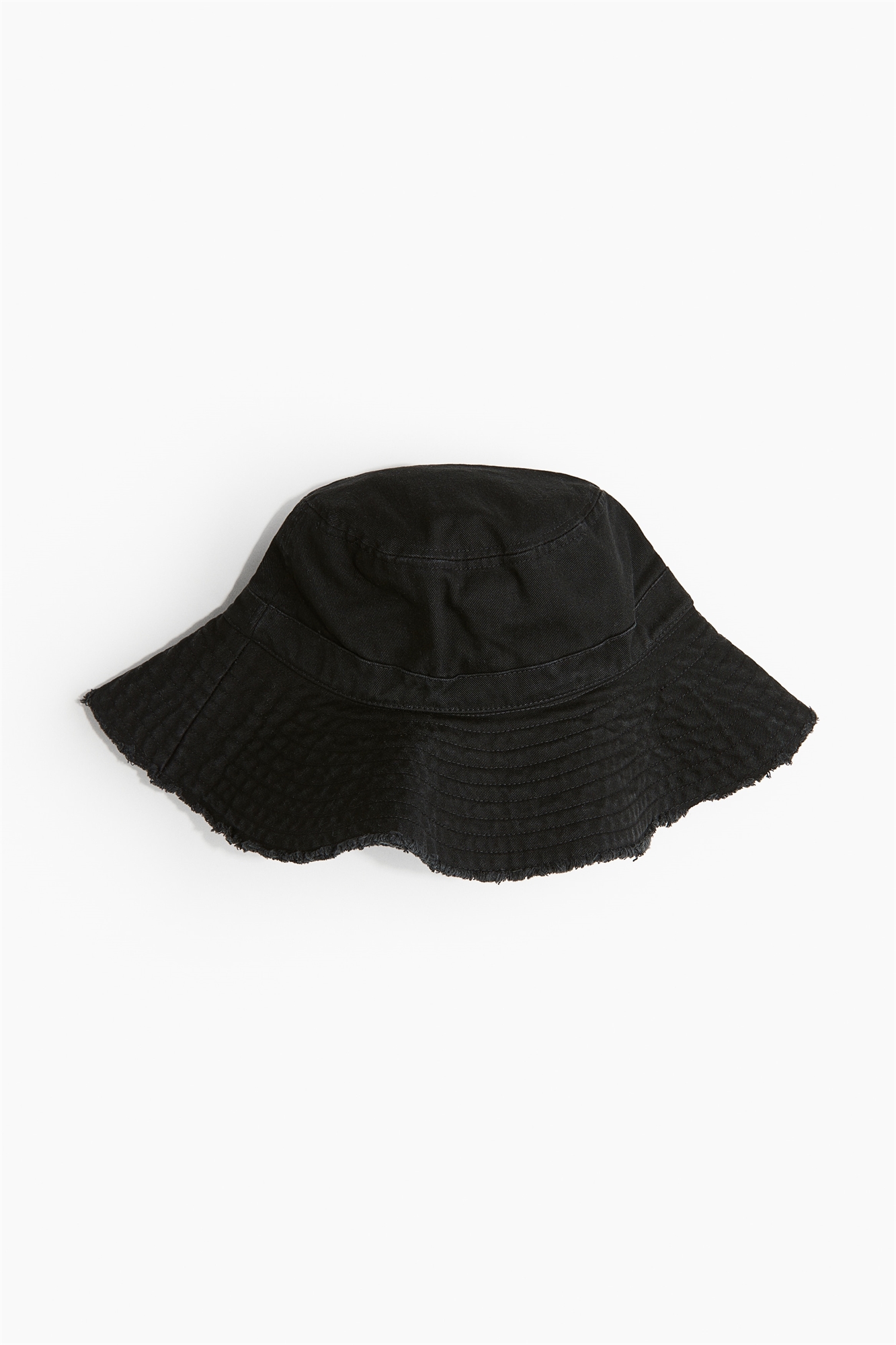 Шляпа-ведро из хлопковой саржи с обтрепанным краем и хлопковым начесом. Ширина по краю 9 см.