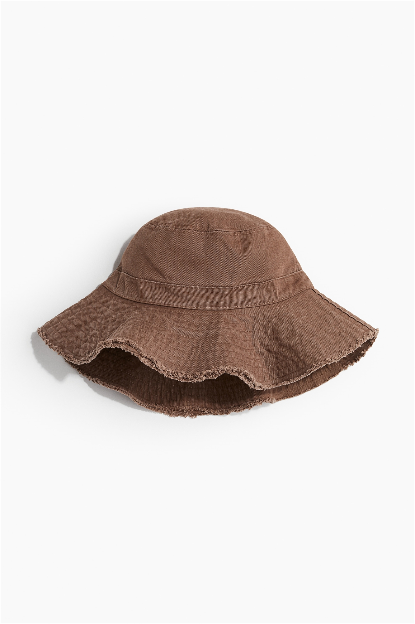 Шляпа-ведро из хлопковой саржи с обтрепанным краем и хлопковым начесом. Ширина по краю 9 см.