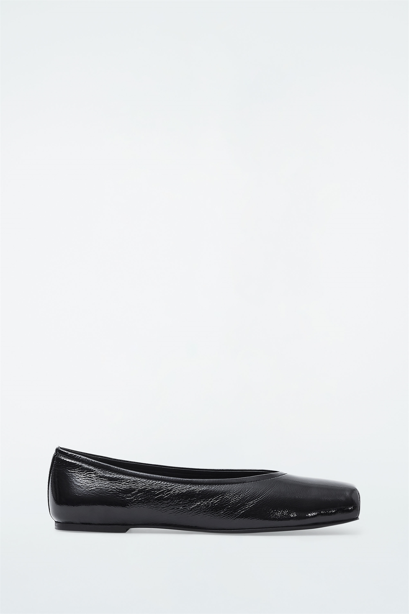 В этом сезоне дизайнеры обуви COS переосмыслили классические балетки для сезона весна-лето 2024. Они изготовлены из лакированной кожи с эффектом "crinkled" и имеют закругленный задник, который тонко контрастирует с современными квадратными носками. COS поддерживает ответственное производство через Leather Working Group Верх и подкладка: 100% кожа. За исключением отделки