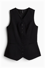 Слегка удлиненная приталенная жилетка из тканого материала с V-образным вырезом, пуговицами спереди и втачными карманами спереди. Швы "принцесса" спереди и сзади для придания силуэту привлекательности. На подкладке.