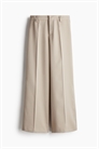 Брюки из саржи с заниженной талией и ширинкой на молнии с потайной застежкой на крючок и планку. Поддельные накладные карманы сзади и широкие ноги со складками спереди.