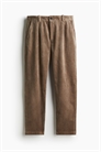 Брюки из мягкого вельвета из смеси хлопка и модала со складками в верхней части спереди для придания дополнительной ширины. Ширинка на молнии и пуговице, диагональные боковые карманы и задние карманы с клапаном на пуговице. Регулярный крой для комфортной носки и классического силуэта.