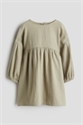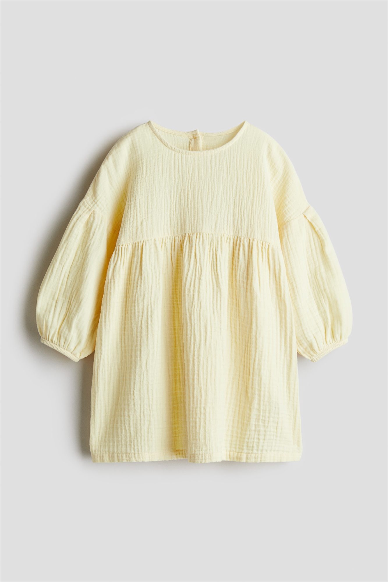 H&M Adorables. Платье из мягкого муслина, изготовленного из высококачественного хлопка, который нежно ощущается на коже. Закругленный вырез, низко опущенные плечи и пышные рукава с эластичными манжетами. Собранный шов на талии и объемная юбка. Застежка на пуговицы сзади. Коллекция H&M Adorables - это подборка качественных вещей с вечной привлекательностью.