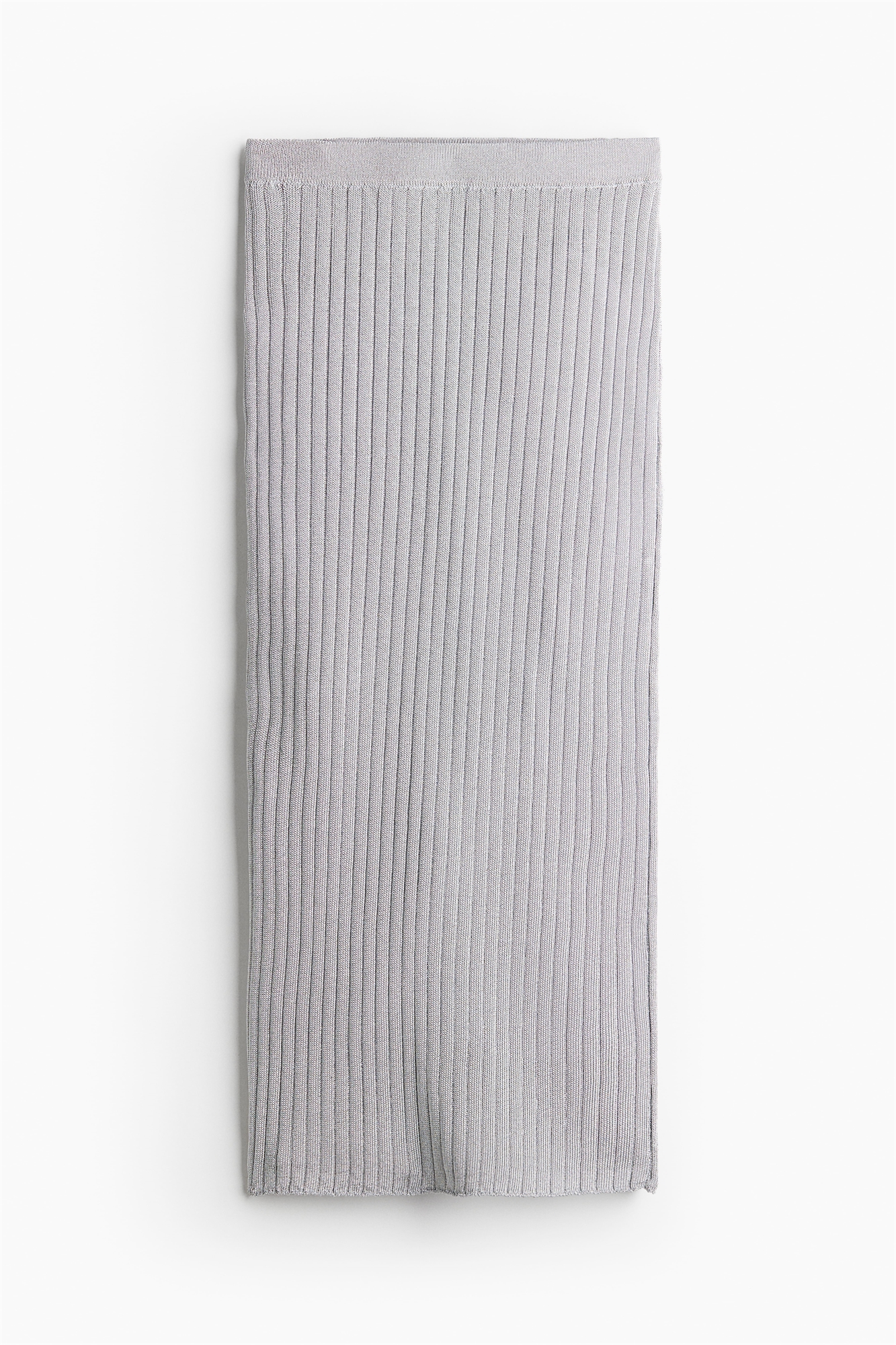 Юбка длиной до колен из трикотажа в рубчик с мерцающими нитями. Эластичная резинка на талии и прямой подол.