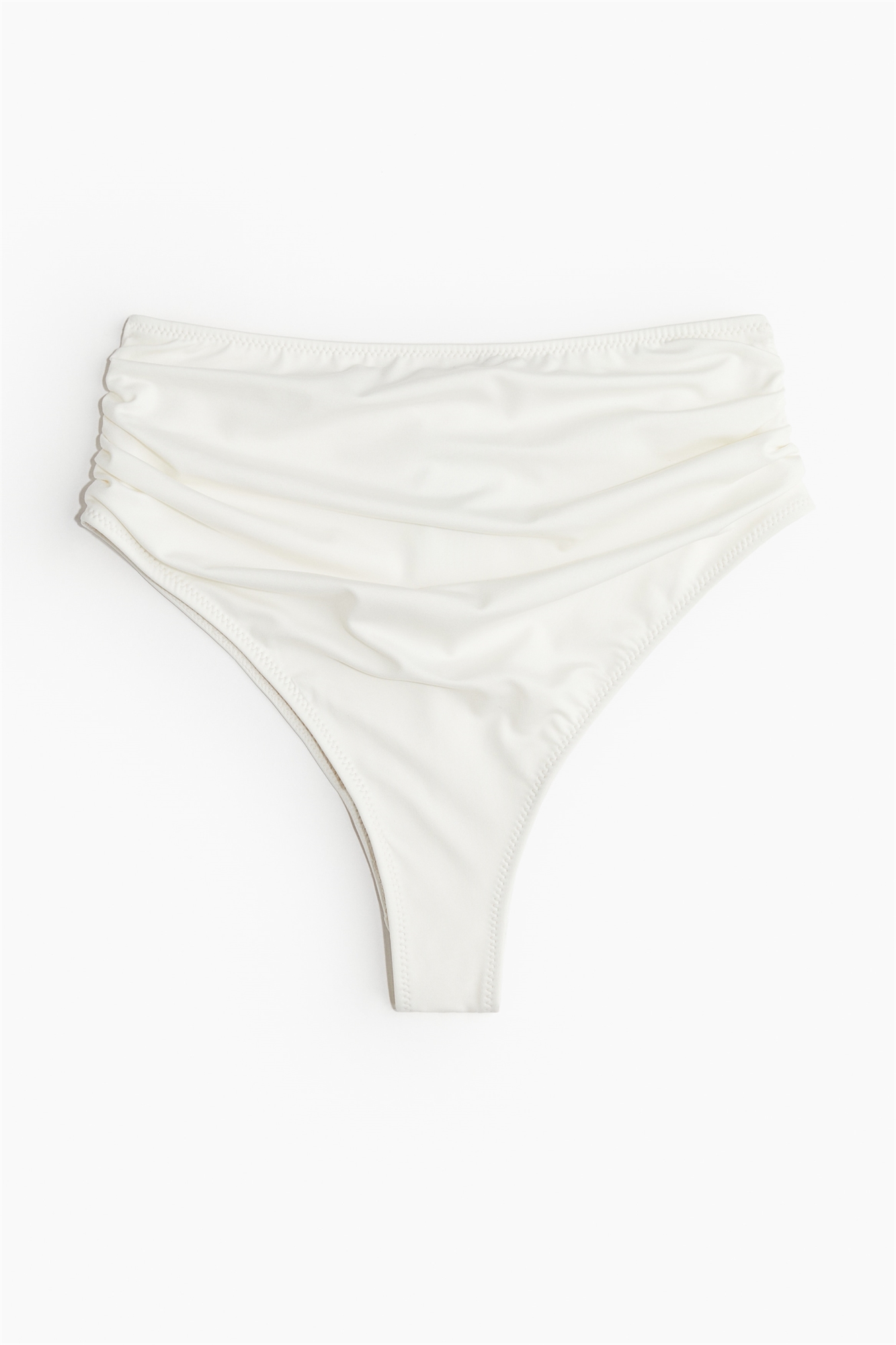 Трусы-бикини с высокой талией на подкладке, со сборками по боковым швам для создания драпированного эффекта. Высокий разрез сзади.