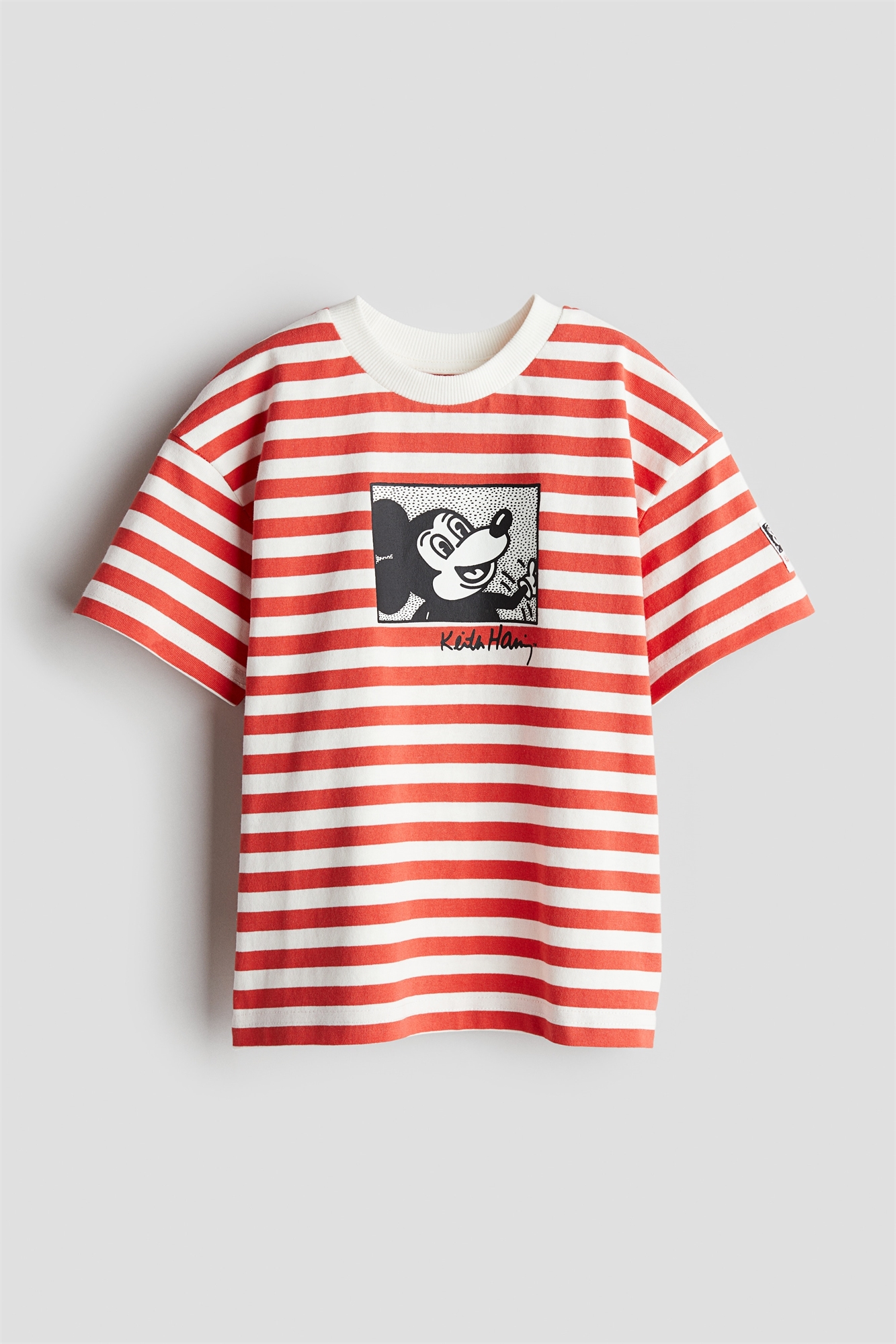 Disney x Keith Haring. Свободная футболка из мягкого хлопкового джерси с принтом. Круглый вырез с ребристой отделкой и спущенные плечи.