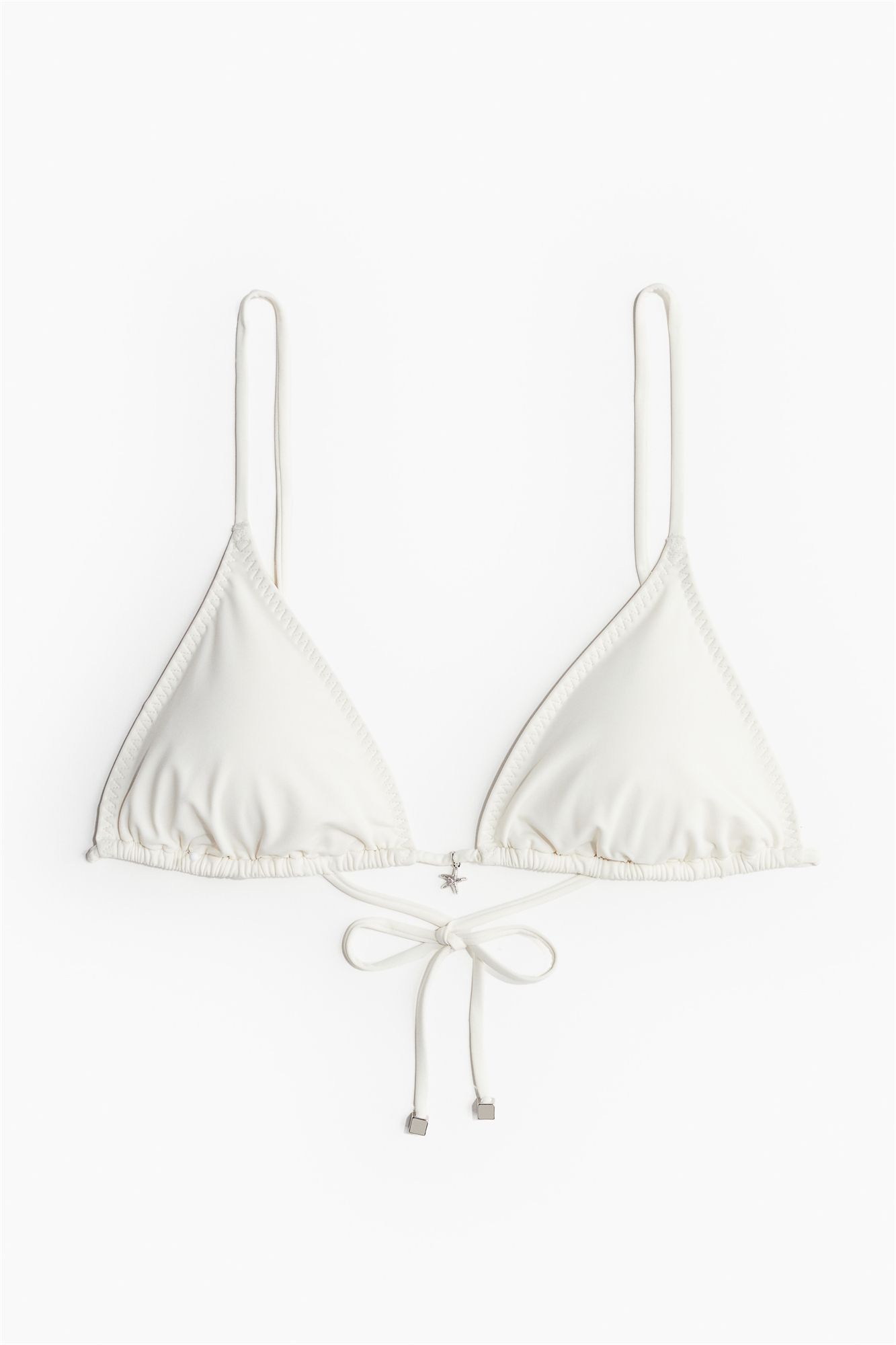 Бикини-треугольник без подкладки с подвеской в виде морской звезды спереди, узкими регулируемыми бретелями и чашечками со съемными вкладышами, которые придают форму бюсту и обеспечивают хорошую поддержку. Завязки сзади.