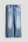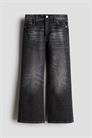 Джинсы с 5 карманами из моющегося денима с мешковатой посадкой по бедрам и ляжкам и опущенной промежностью. Заниженная талия с регулируемой резинкой для идеальной посадки, ширинка на молнии и пуговице, широкие расклешенные штанины.