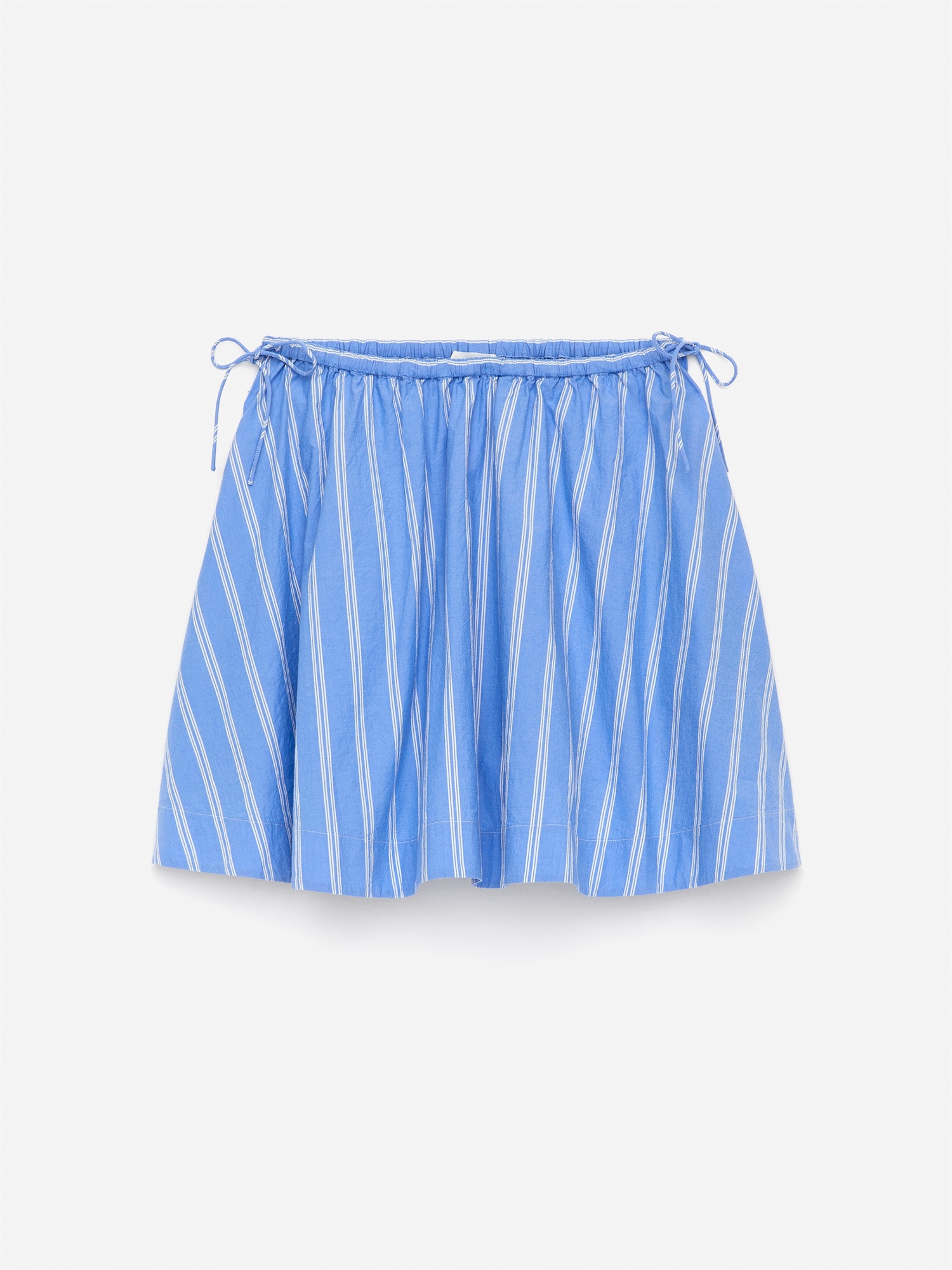 Короткая юбка А-линии с карманами в боковых швах. С мягкой резинкой на талии и фиксированными ремешками-рулонами по бокам. Полностью на подкладке.