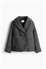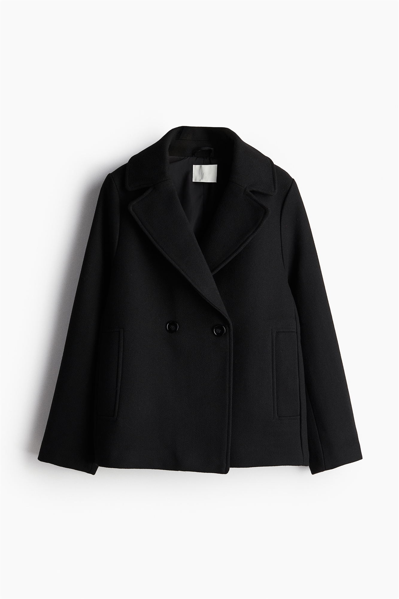 Короткое двубортное пальто в горошек из мягкой саржи с лацканами с вырезом, пуговицами спереди, слегка опущенными плечами и втачными боковыми карманами. На подкладке.