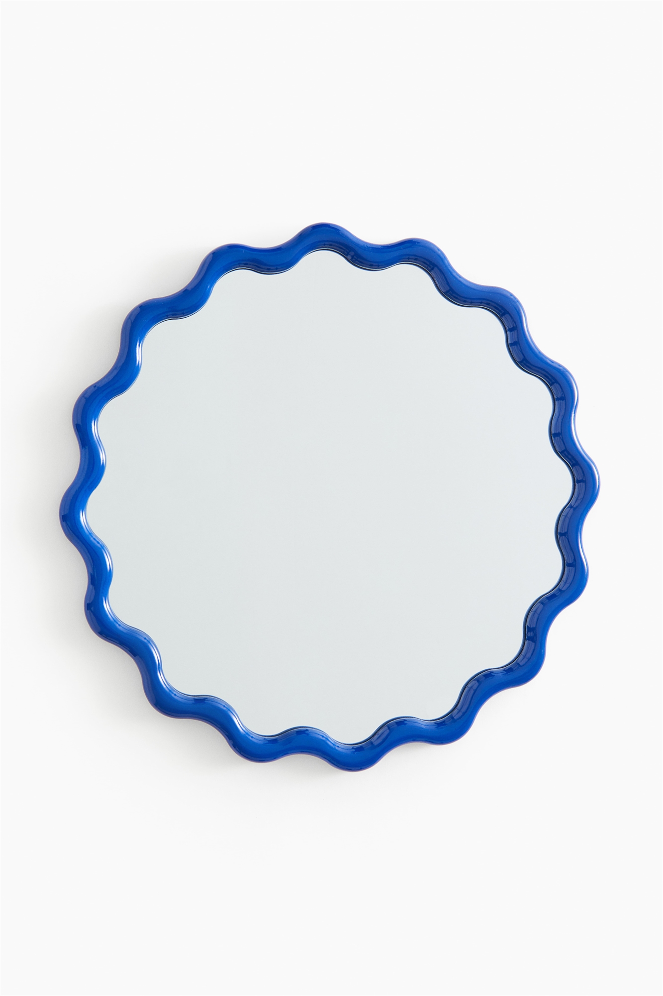 Круглое зеркало с волнистой рамой из крашеного МДФ с вешалкой на задней стенке. Винты в комплект не входят. Диаметр 40 см.