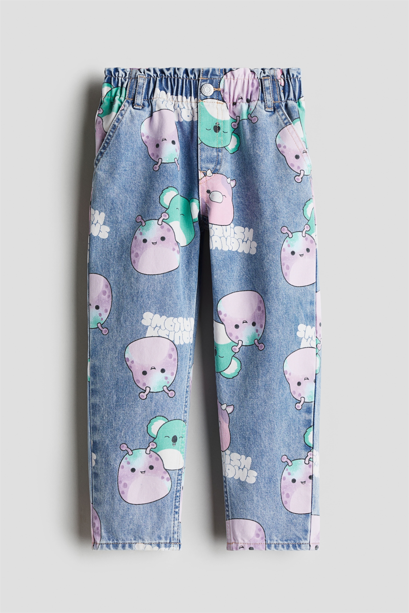 Джинсы из принтованного хлопкового денима с зауженными ногами. Свободный крой по бедрам, ляжкам и штанинам. Регулируемая и эластичная талия, фальшивая ширинка с пуговицей, диагональные боковые и задние карманы.