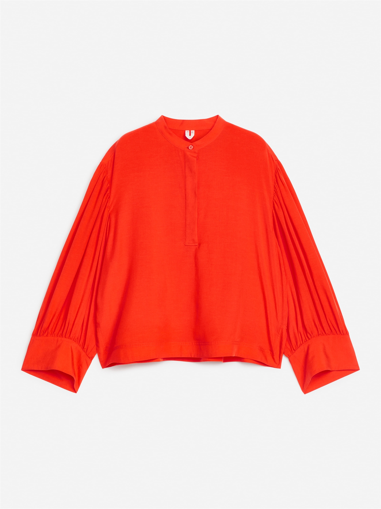 Блузка из смеси лиоцелла и льна со сборками на рукавах и широкими манжетами. С разрезами по бокам и полузастежкой на пуговицах. Свободный крой.