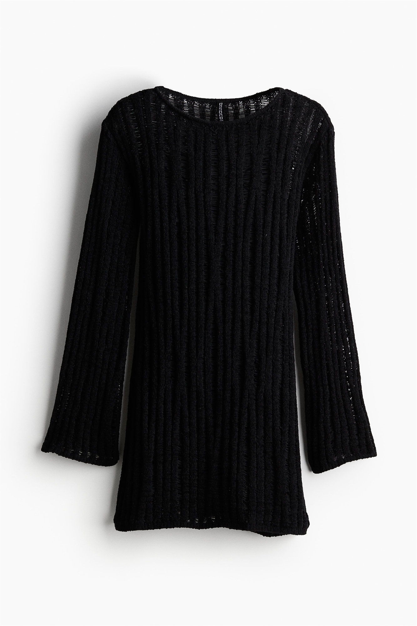 Мини-платье из мягкого трикотажа с лестничным швом. Круглый вырез и длинные рукава. Без подкладки.