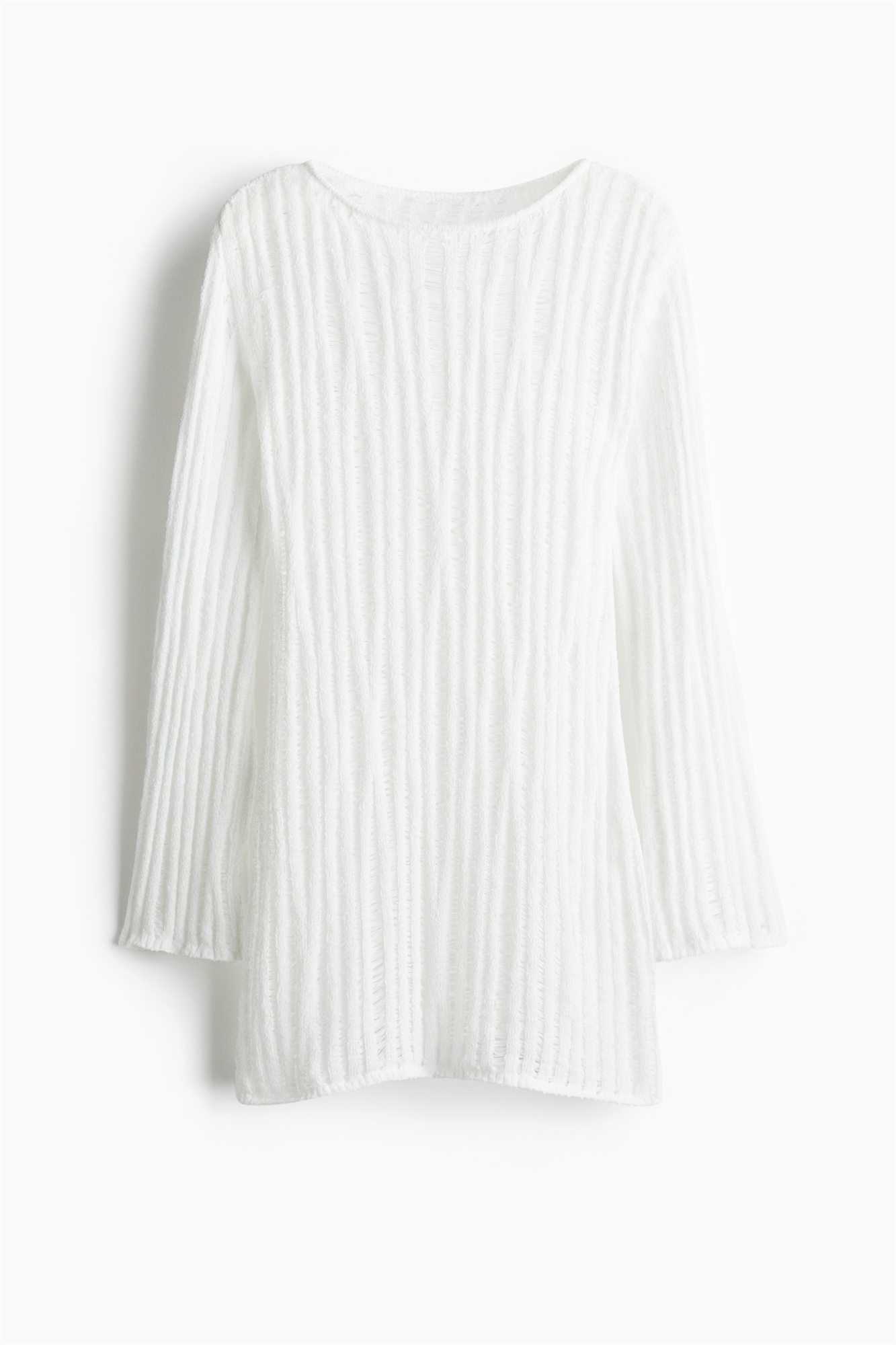 Мини-платье из мягкого трикотажа с лестничным швом. Круглый вырез и длинные рукава. Без подкладки.