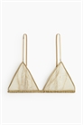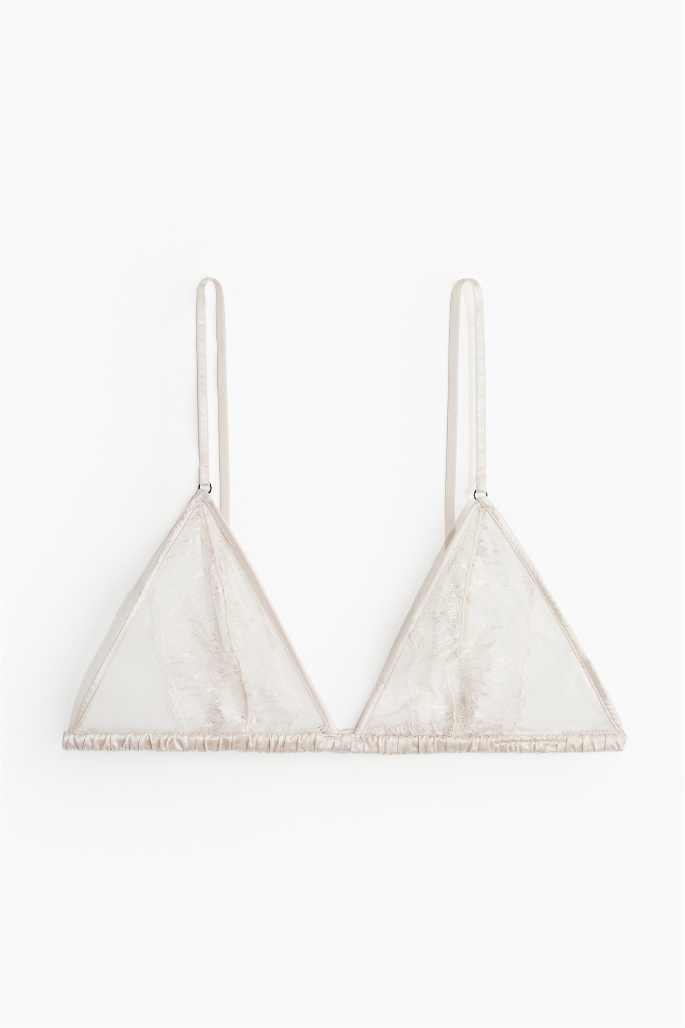 Мягкий бюстгальтер без проводов из кружева с регулируемыми бретелями и чашечками без подкладки, которые придают бюсту естественную форму и обеспечивают легкую поддержку. Эластичная резинка по подолу и узкая застежка-крючок сзади.